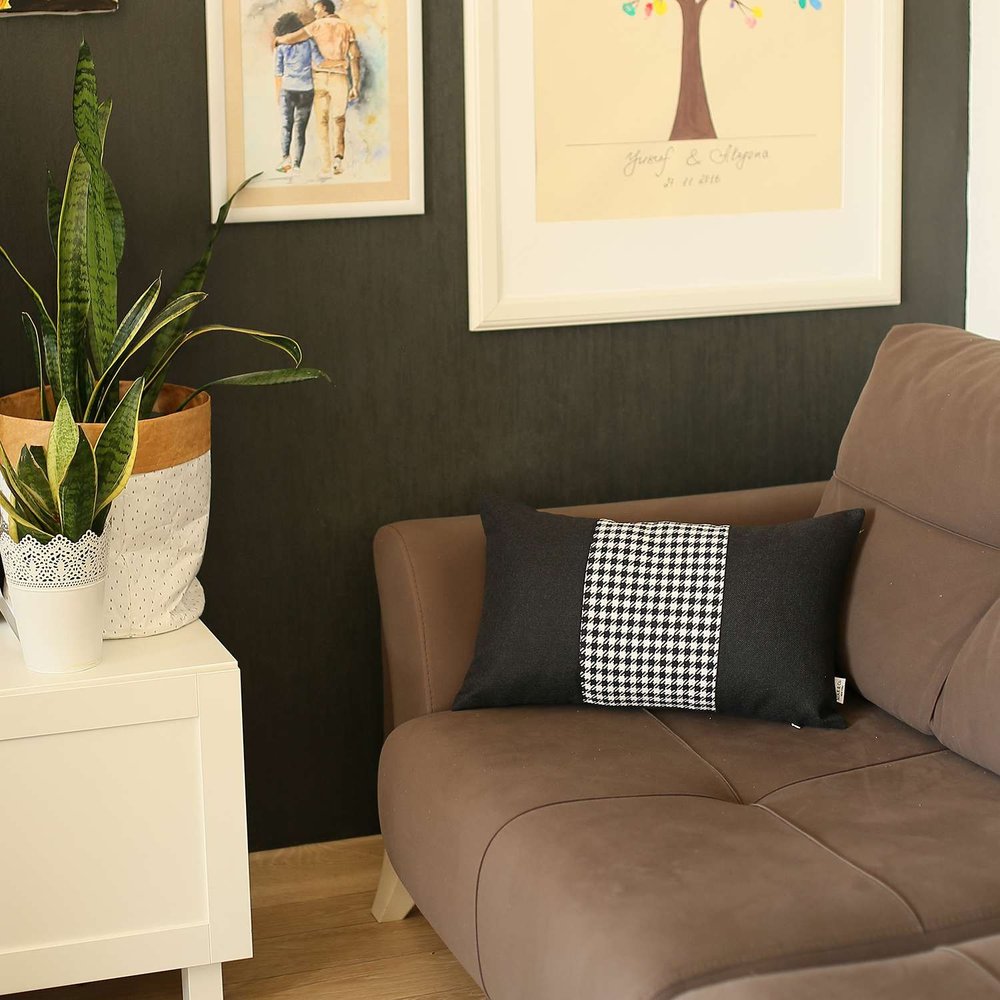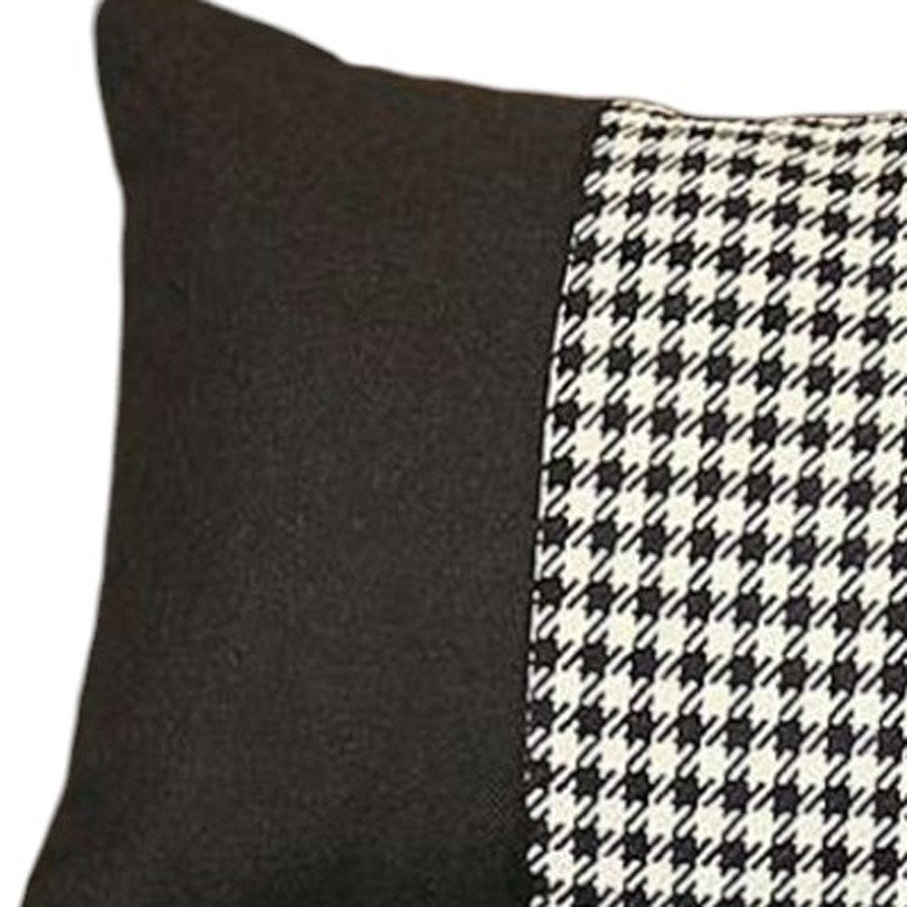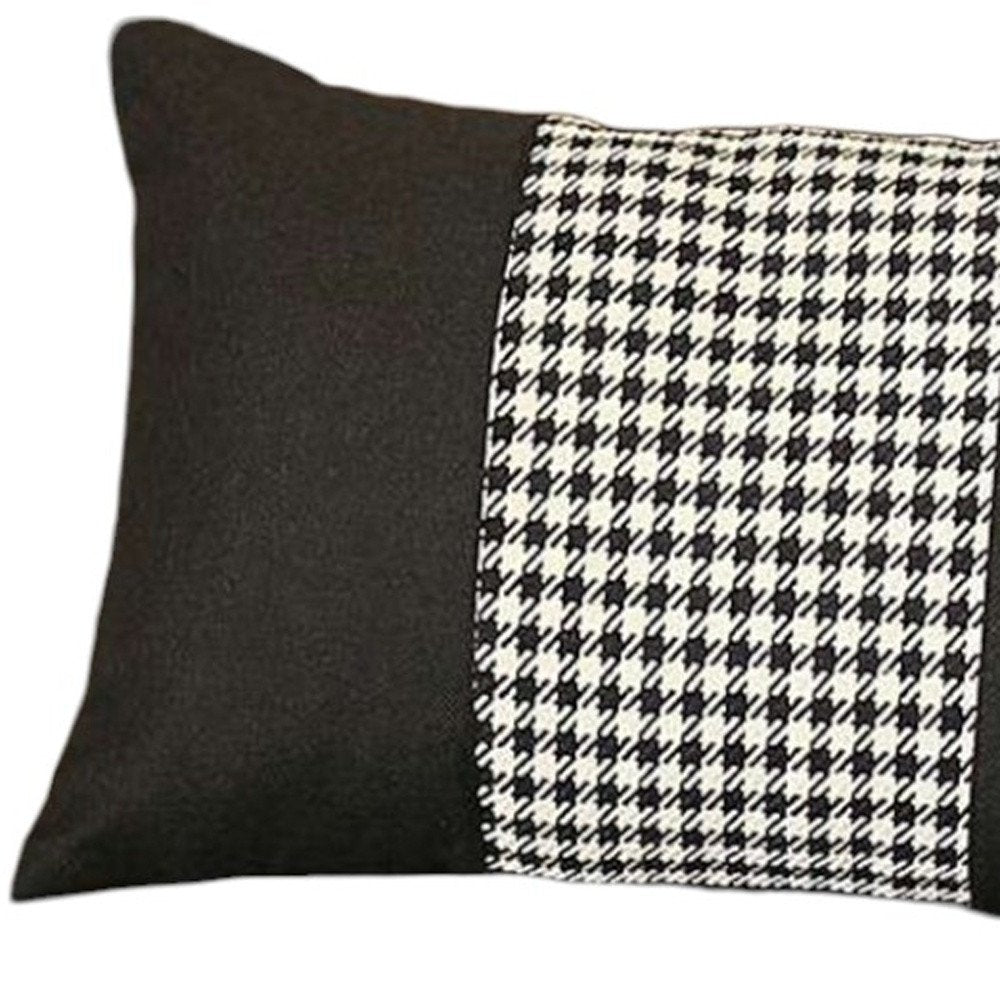 12" X 20" Black And White Houndstooth Zippered Handmade Polyester Lumbar Pillow Cover