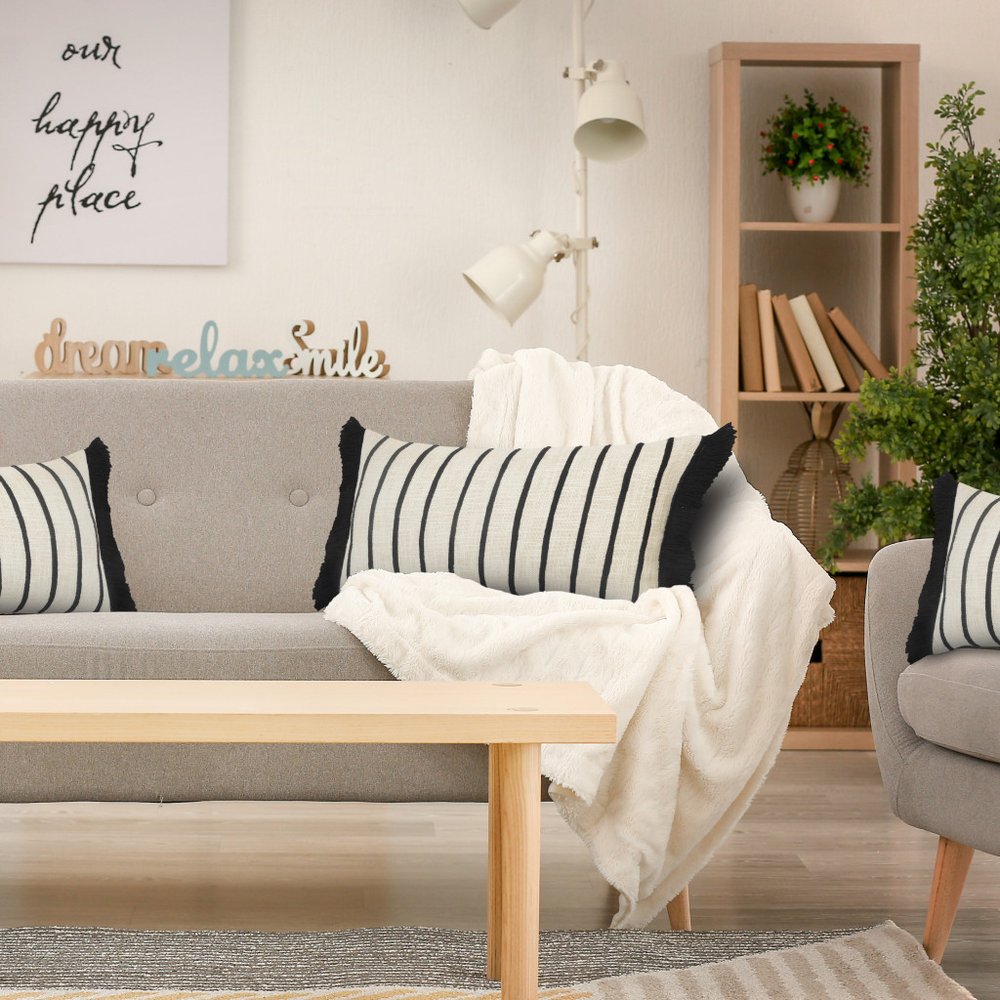 The 12" x 28" ivory and black 100% cotton striped zippered pillow is the perfect decorative accessory for your home. This ivory and black hued piece represents quality construction, expertly made from premium 100% cotton that is not only long lasting but super soft to the touch as well. Decorative throw pillows not only add color and dimension to your space but can be comfy and supportive when you are lounging and cuddling as well. A great decorative accessory for your favorite chair, to accent your sofa, or to use as part of your bed ensemble. 12" H x 12" W x 28" D