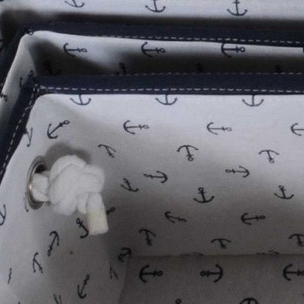 13.5" X 17" X 22.5" Blue Fabric Basket With Bow Decoration Set Of 5