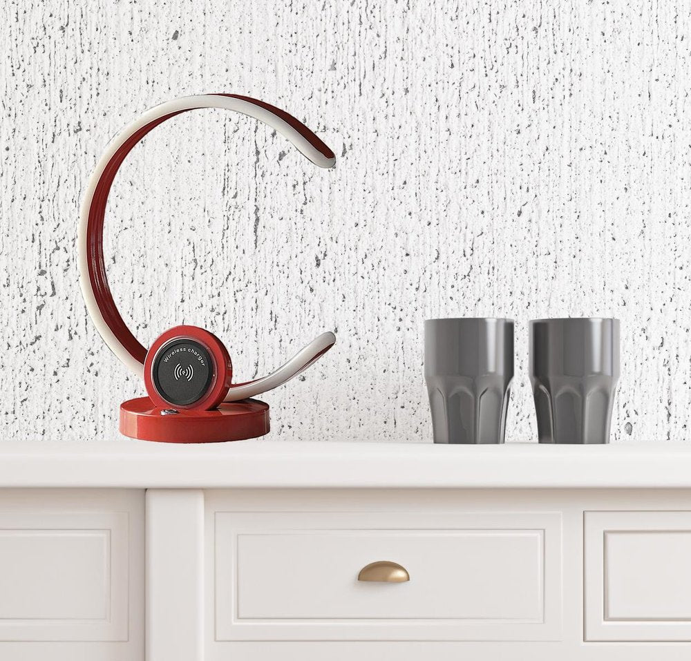 With this 13" red contempo C shape LED with USB desk or table lamp you can bring in design to any space along with adding some ambient lighting. This desk lamp provides 'task lighting' that will illuminate your working area for reading or writing. Use this lamp anywhere and elevate the look of the whole space. The perfect contemporary lamp to bring just the right light and technology to your space. 13.25" H x 6" W x 11" D