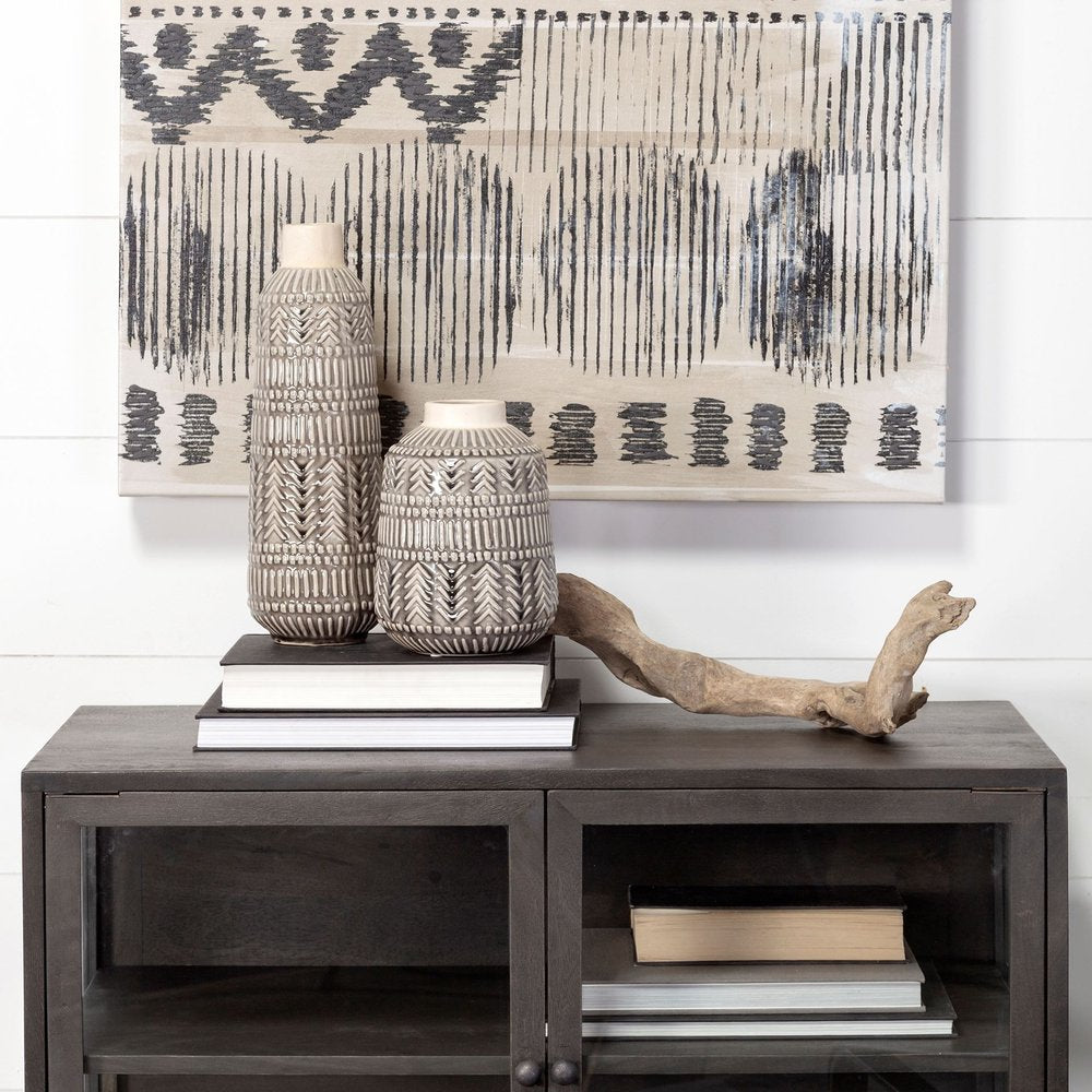 14" Gray Abstract Cylinder Ceramic Table Vase