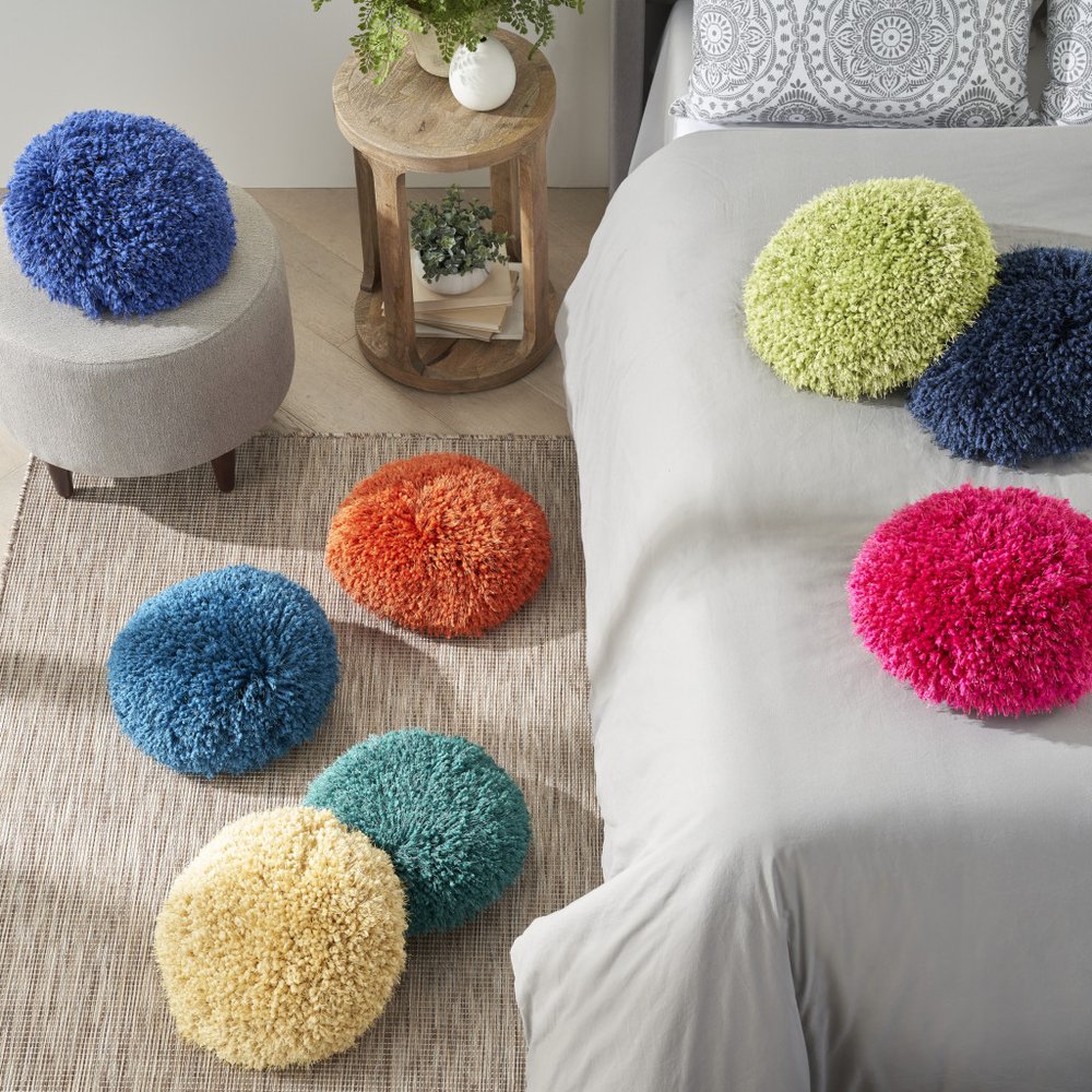Bring a bit of fashion and zip to your space with this eye-catching and comfy 14-inch x 14-inch yellow round shag throw pillow. Durable yellow shag has been used to give this pillow a beautiful look that will stand the test of time. Super soft and built to hold its shape, this polyfill pillow is a great option. Great to use on its own or mix with other decorations for the perfect look. A great decorative accessory for your favorite chair, to accent your sofa, or to use as part of your bed ensemble. 14-inch H x 14.00-inch W x 5.00-inch D