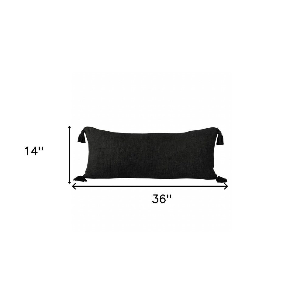 14" X 36" Beige Cotton Throw Pillow with Tassels