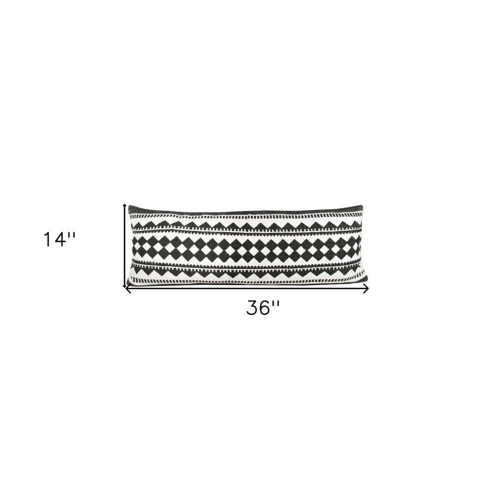 14" X 36" Black And White 100% Cotton Geometric Zippered Pillow