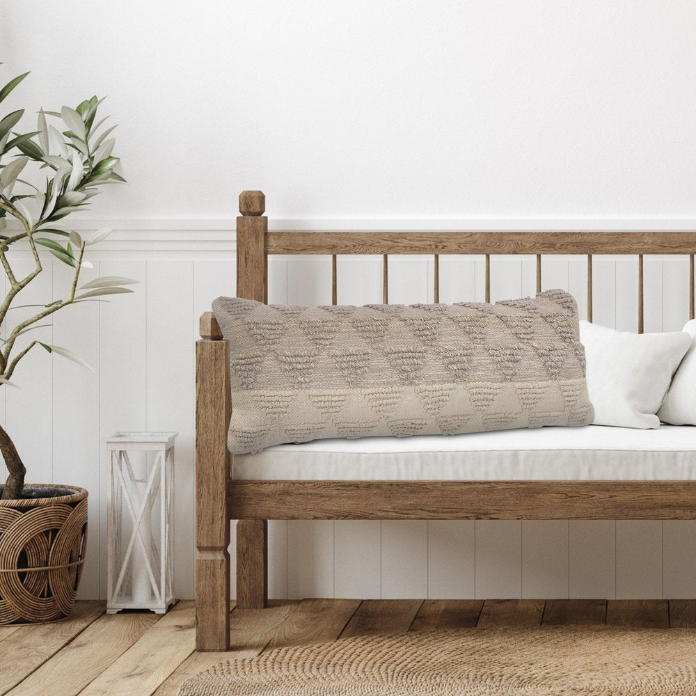 14" X 36" Natural and Gray Geometric Cotton Lumbar Throw Pillow