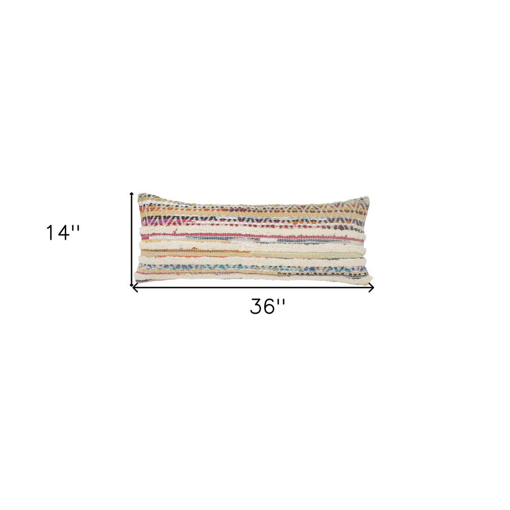 14" X 36" Off White Red And Blue Cotton Striped Throw Pillow