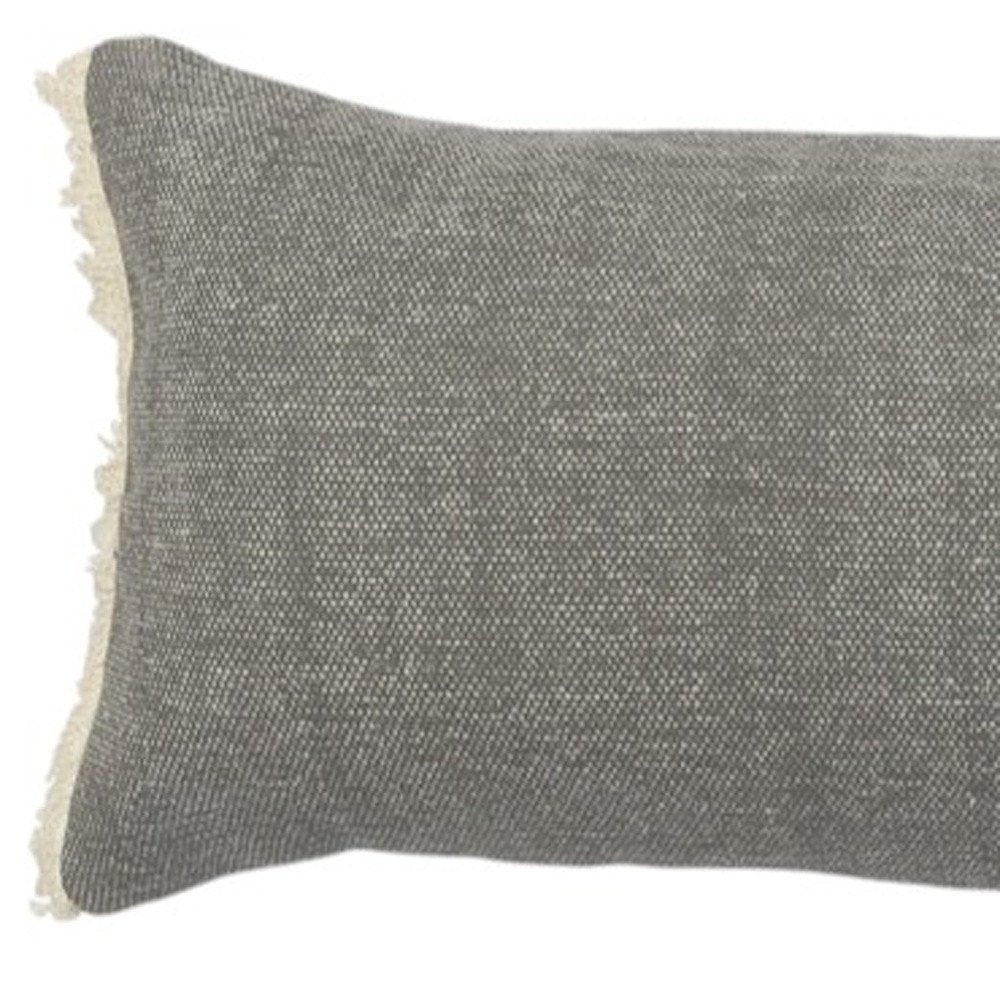 14" X 36" Gray Cotton Throw Pillow with Fringe