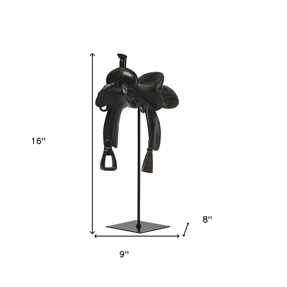16" Black Metal and Resin Western Horse Saddle Tabletop Sculpture