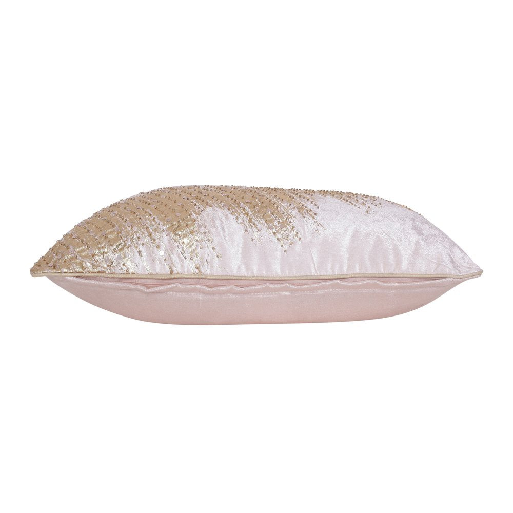 Unique and decorative, this comfortable 16-inch x 24-inch gold abstract polyester zippered pillow with beads will leave a lasting impression. The gold coloring of the extremely durable and long lasting polyester will add dimension and texture to your space. Super soft and built to hold its shape, this polyfill pillow is a great option. Great to use on its own or mix with other decorations for the perfect look. A great decorative accessory for your favorite chair, to accent your sofa, or to use as part of your bed ensemble. 16-inch H x 24-inch W x 4-inch D