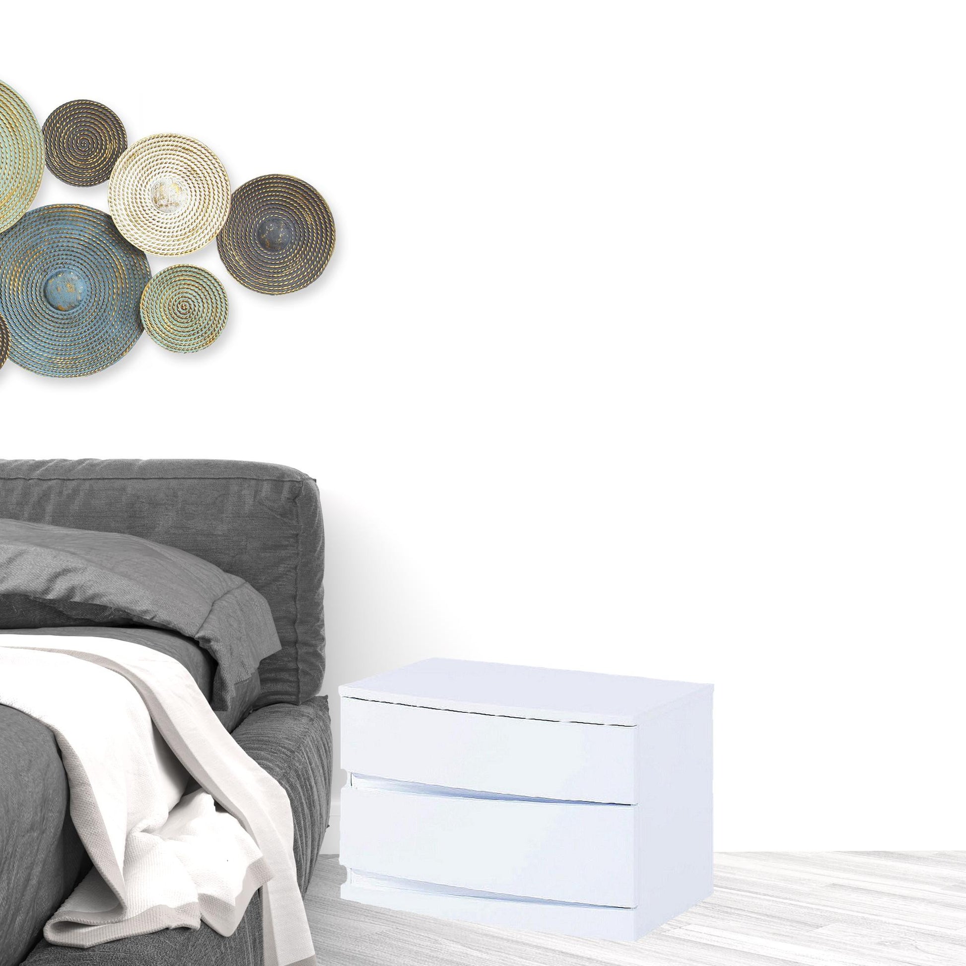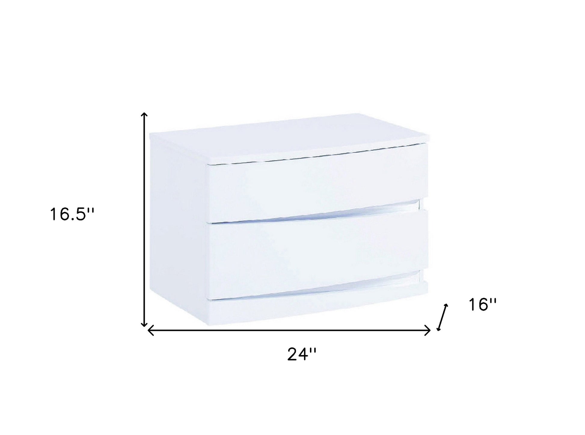 Modern design and practical styling meet to form the good-looking 17" white two drawers manufactured wood mirrored nightstand. This nightstand features a gorgeous white tones, making it a fitting choice for most room decors. Additionally, it has 2 drawers for maximum storage and antique style hardware. Made with high quality materials in China, this piece can bring modern style to your decor. The high quality materials used in this unique piece are going to last for years. This unique looks and design will give an alluring modern feel to the atmosphere of your home. 16.5" H x 24" W x 16" D