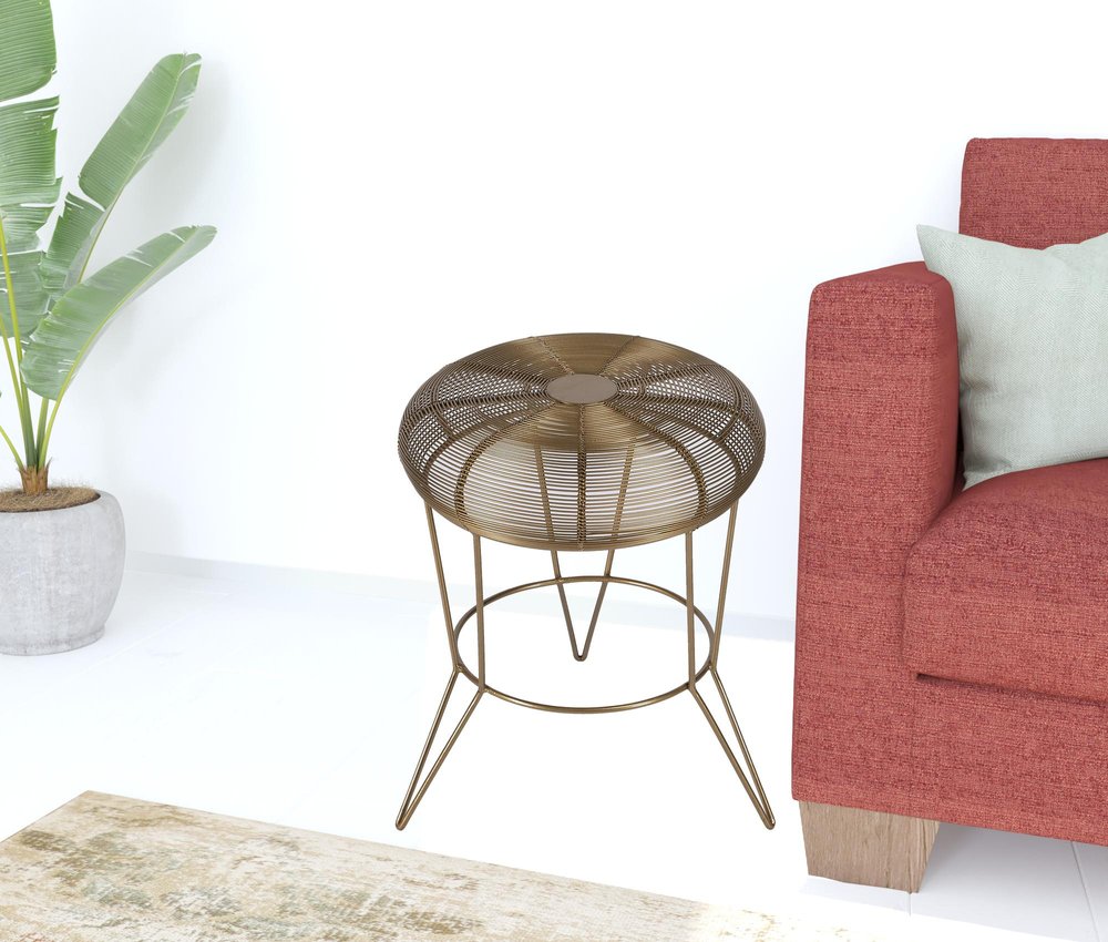 Show off your exquisite taste with this 18" antique gold iron round end table. Made of iron, the antique gold coloration throughout gives this piece an updated and refreshing look. The purposefully distressed finish gives this table an authentically rustic feel. A great accent on either side of the sofa or bed, this adorable end or side table is just what you need. You can match it with other pieces to get the ideal look for your place. 18" H x 15" W x 15" D
