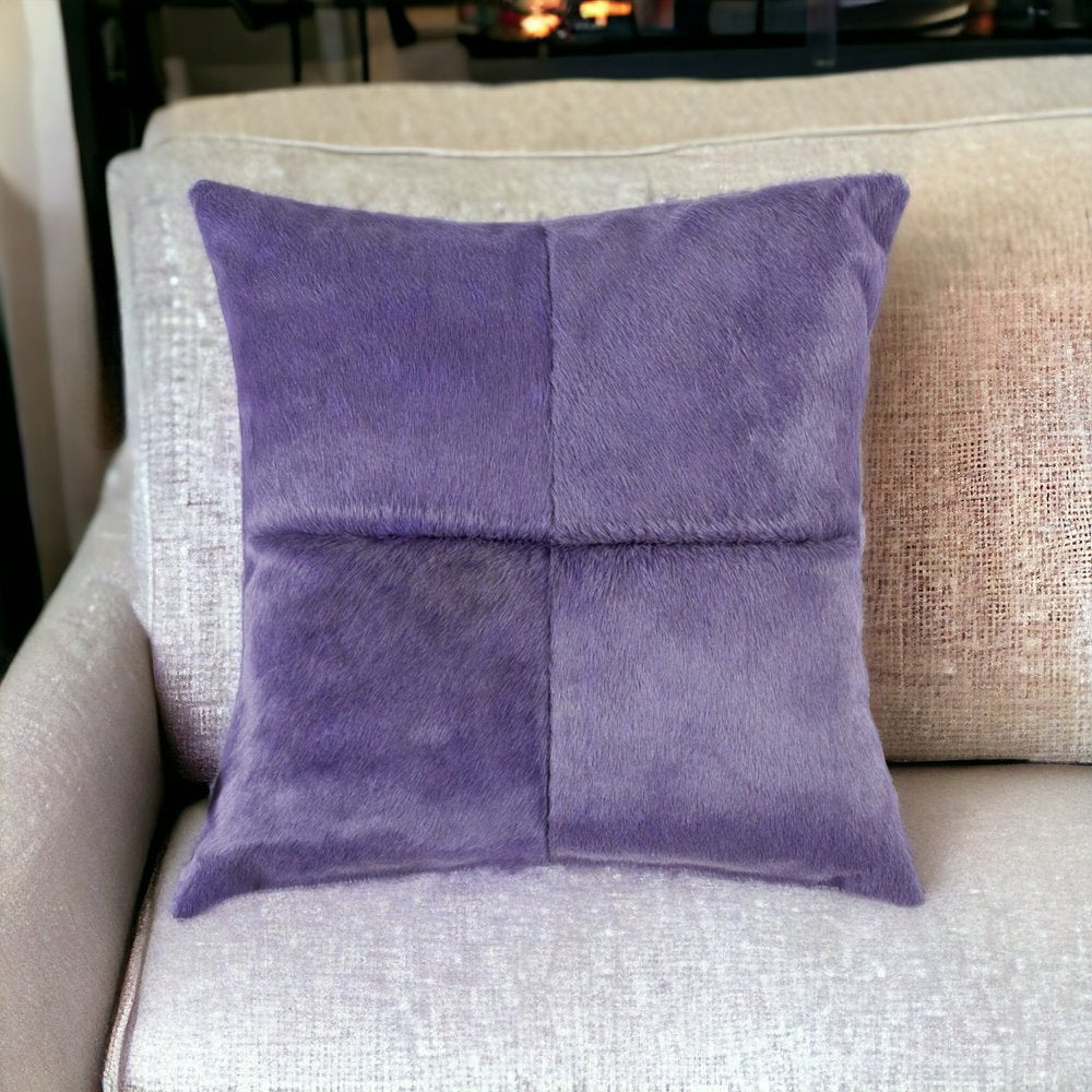 This 18-inch black and white cowhide throw pillow will add a beautiful decorative accent to your decor. This luxuriously soft designer style pillow is expertly made of high grade, genuine cowhide in a black and white coloration. Elegantly chic, this pillow is the epitome of luxury. This soft polyester filled pillow not only is decorative but made to be comfy and cozy all day long. For anyone that loves to decorate or accent their space with color and texture. A great decorative accessory for your favorite chair, to accent your sofa, or to use as part of your bed ensemble. 18-inch H x 18-inch W x 5-inch D