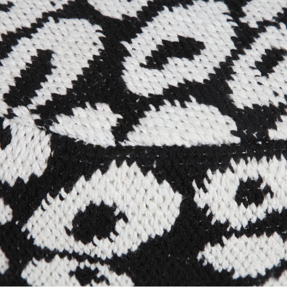 Add a good looking decorative accent to your space that is also practical for seating. Add chic style to your space with this fun pouf that not only looks cool but can be a great foot rest or extra seat when needed. Expertly upholstered with padding and soft cotton blend in a abstract pattern, this ottoman is as comfortable as it is good looking. Ottomans are multi-functional additions to your space that add fashion and practical value. 14-inch h x 18-inch w x 18-inch d.