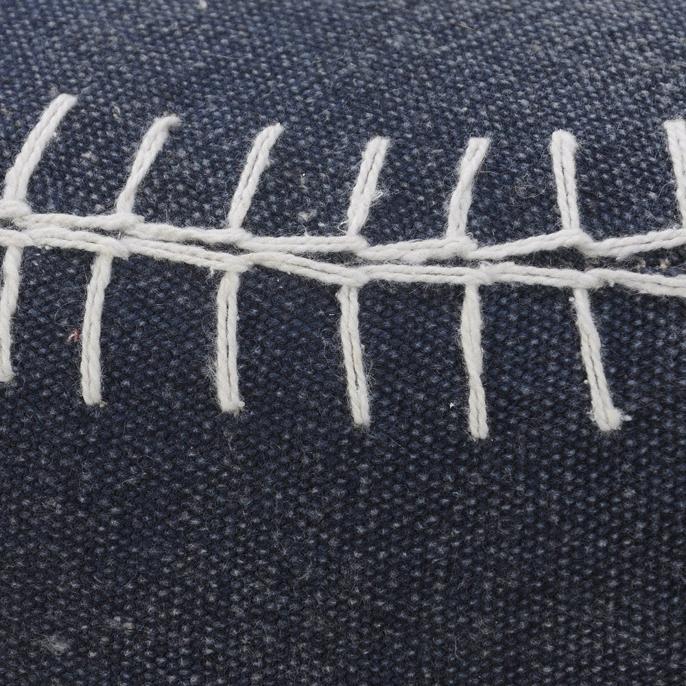 Get ready to relax with this 18-inch blue cotton cylinder striped pouf ottoman. Add chic style to your space with this fun pouf that not only looks cool but can be a great foot rest or extra seat when needed. Expertly upholstered with padding and soft 100% cotton in a striped pattern, this ottoman is as comfortable as it is good looking. Easy to blend into most any room, a ottoman is a way to add a good looking accent to your space that can also be practical and useful. 14-inch h x 18-inch w x 18-inch d.