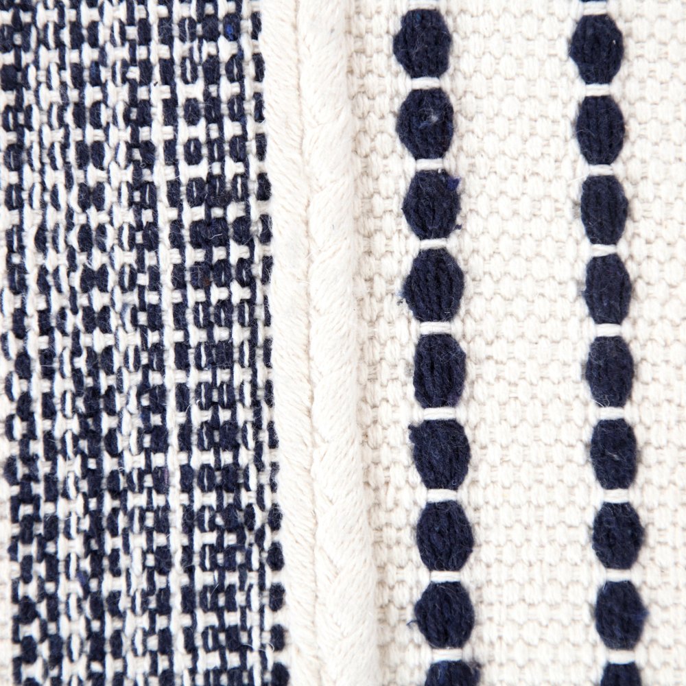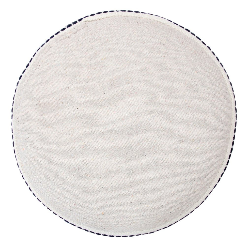 Optimize your space and add some charm to your room with the 18-inch blue cotton cylinder striped pouf ottoman. Add chic style to your space with this fun pouf that not only looks cool but can be a great foot rest or extra seat when needed. Expertly upholstered with padding and soft 100% cotton in a striped pattern, this ottoman is as comfortable as it is good looking. Easy to blend into most any room, a ottoman is a way to add a good looking accent to your space that can also be practical and useful. 14-inch h x 18-inch w x 18-inch d.