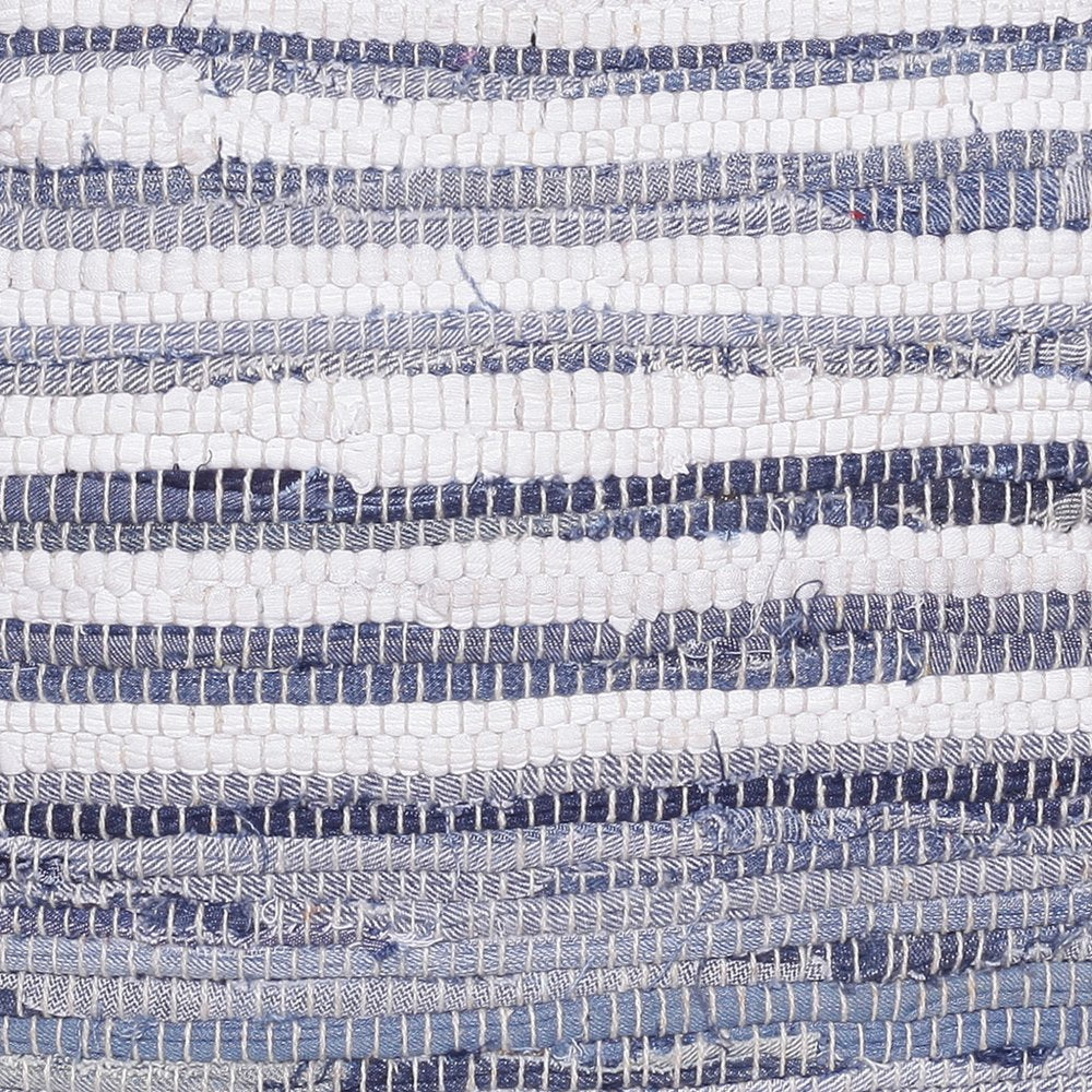 18" Blue Cotton Cube Striped Pouf Ottoman