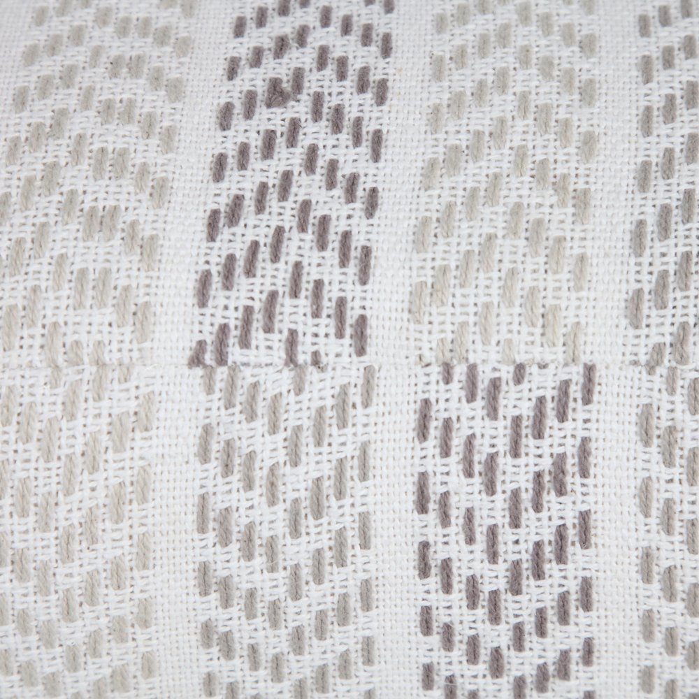 Get ready to relax with this 18-inch gray and white cotton chevron pouf ottoman. Add chic style to your space with this fun pouf that not only looks cool but can be a great foot rest or extra seat when needed. Expertly upholstered with padding and soft cotton in a chevron pattern, this ottoman is as comfortable as it is good looking. Easy to blend into most any room, a ottoman is a way to add a good looking accent to your space that can also be practical and useful. 14-inch h x 18-inch w x 18-inch d.