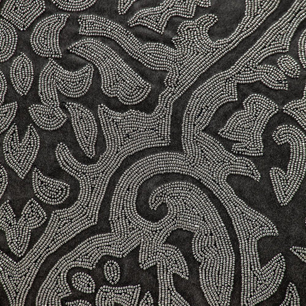 18" Gray and Silver Damask Velvet Throw Pillow With Beads