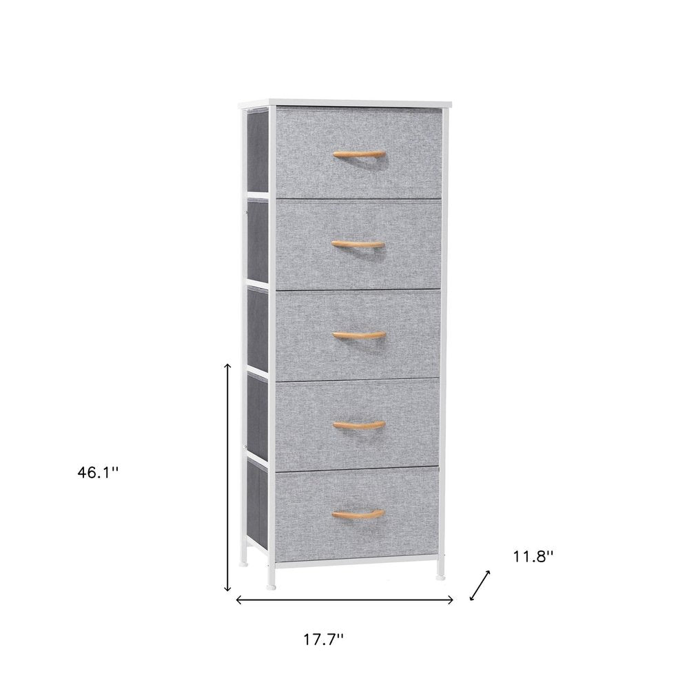 18" Gray and White Steel and Fabric Five Drawer Chest