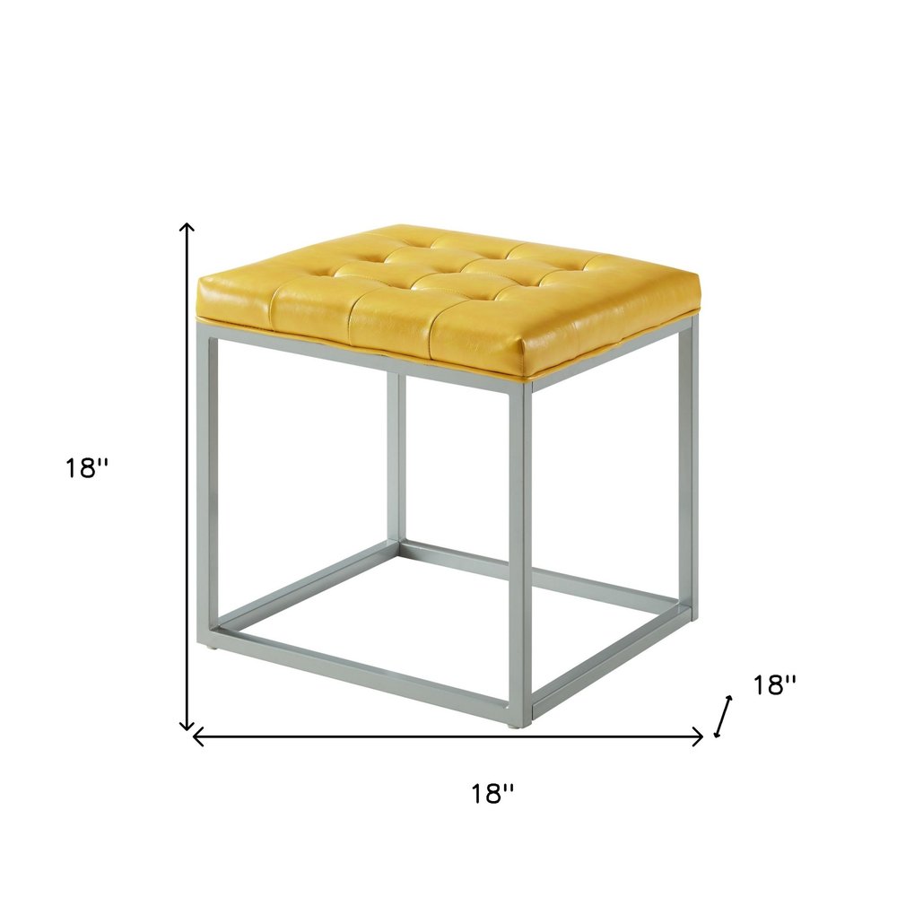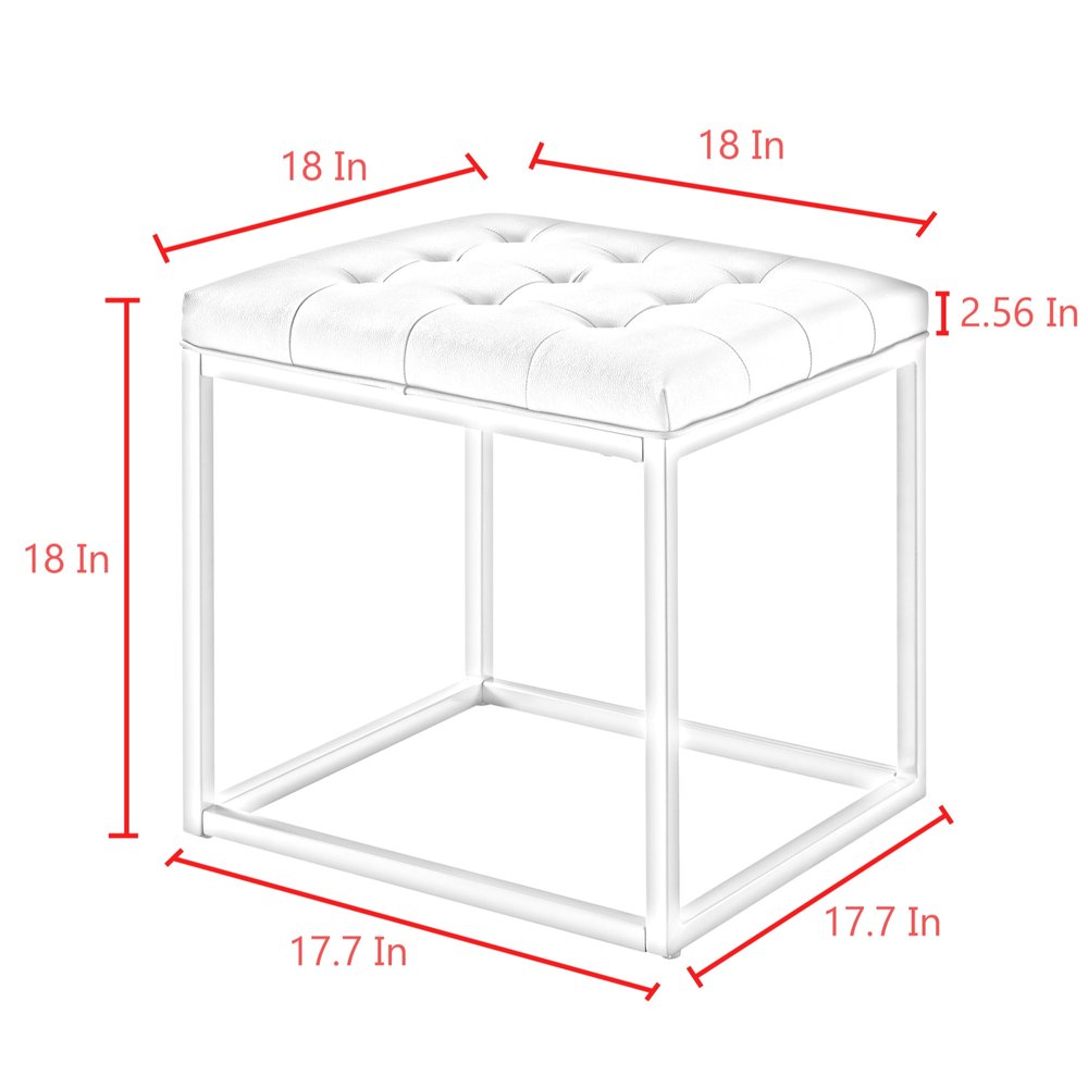 Add a good looking decorative accent to your space that is also practical for seating. Add chic style to your space with this fun cube that not only looks cool but can be a great foot rest or extra seat when needed. A gray metal frame is finished off with a purple upholstery seat that is the epitomy of quality construction and design. Expertly upholstered with padding in a soft solid color faux leather, this ottoman is as comfortable as it is good looking. Easy to blend into most any room, a ottoman is a way to add a good looking accent to your space that can also be practical and useful. . 18" H x 18" W x 18" D