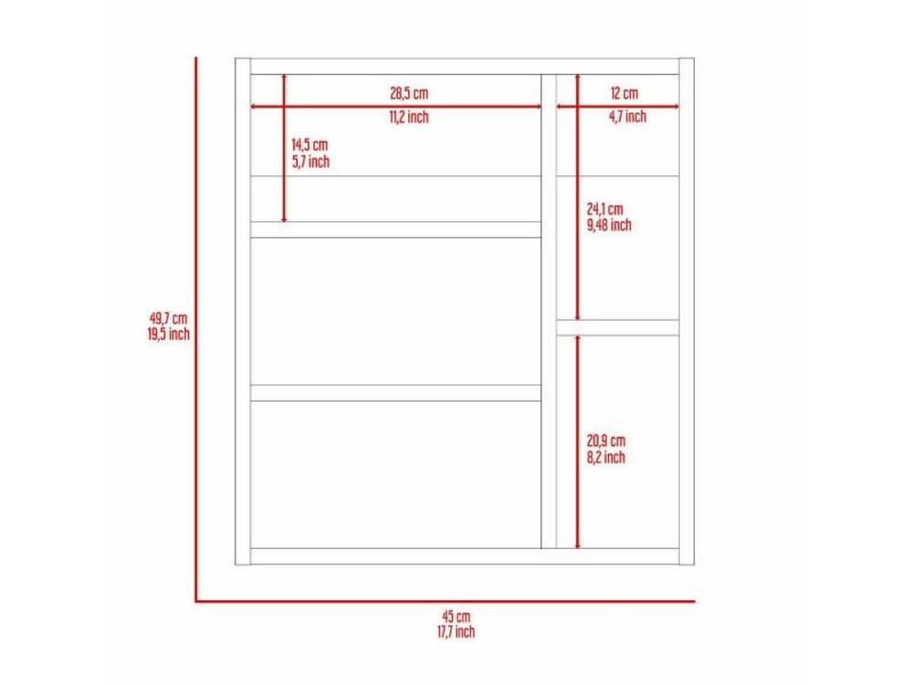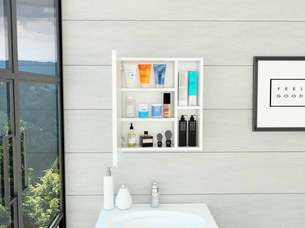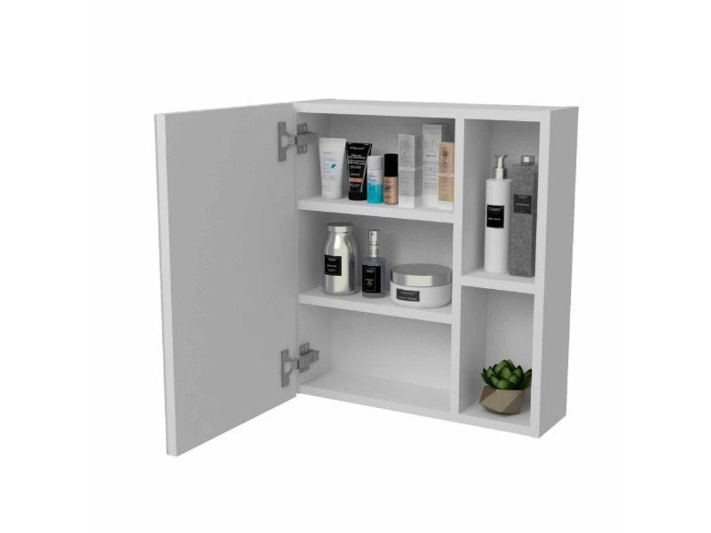 This 18-inch white wall mounted accent cabinet with five shelves will be the perfect addition to your dining or living space. This cabinet features a glamorous and reflective mirrored finish. Its a high quality piece, made from premium grade manufactured wood. Storage vessels don't have to be unsightly. Increase your storage space and the fashion quotient of your room with this hard wearing, versatile, and good looking cabinet. 19.5-inch H x 17.7-inch W x 5.4-inch D