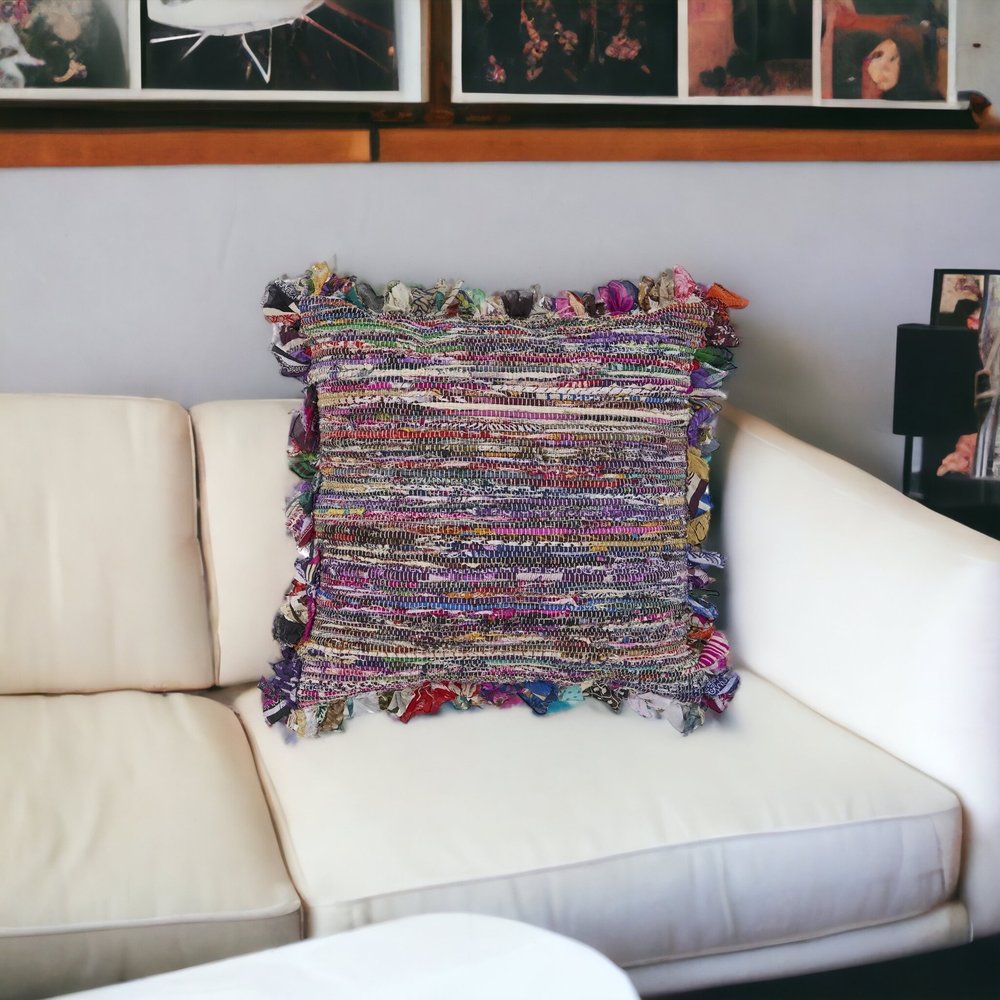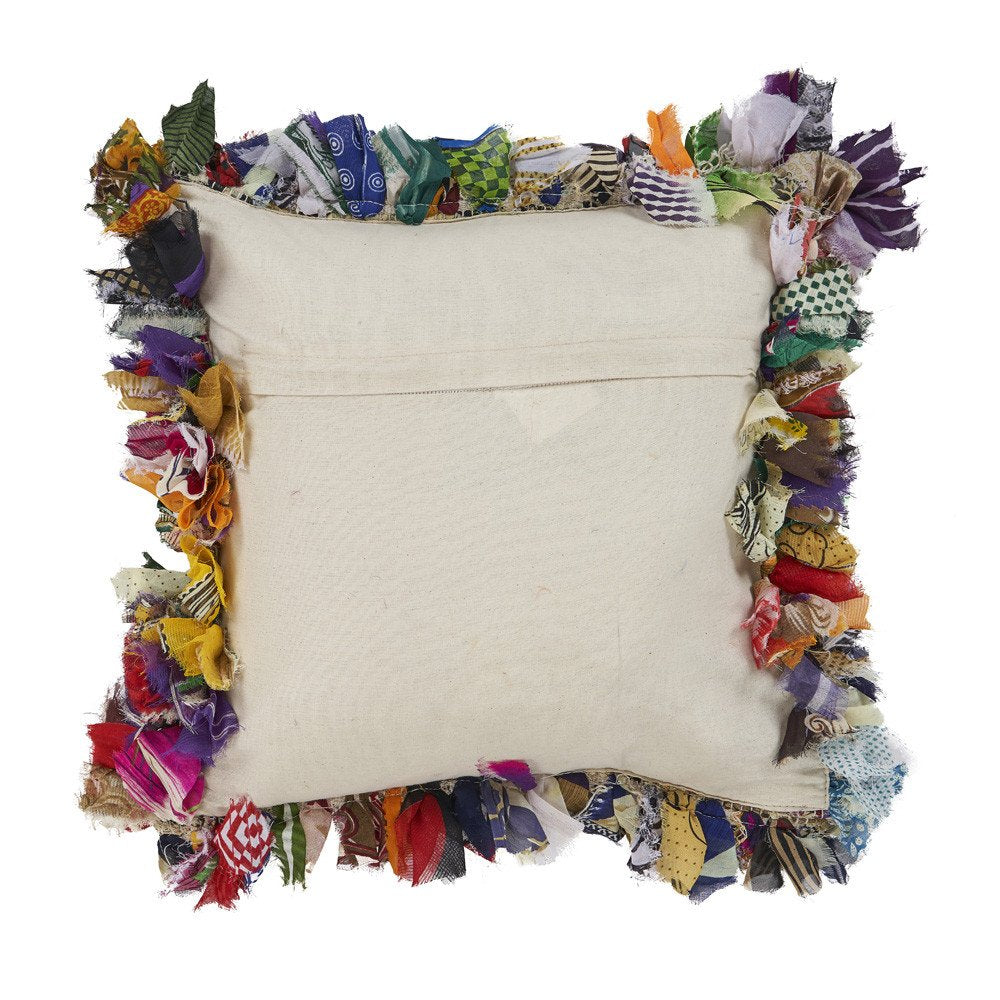 Bring a bit of fashion and zip to your space with this eye-catching and comfy 18-inch blue and red throw pillow with fringe. The blue and red coloring of the extremely durable and long lasting cotton will add dimension and texture to your space. Super soft and built to hold its shape, this polyfill-filled pillow is a great option. Great to use on its own or mix with other decorations for the perfect look. A great decorative accessory to add color and dimension to your favorite chair, accent your sofa, or to use as part of your bed ensemble. 18-inch h x 18-inch w x 6-inch d.