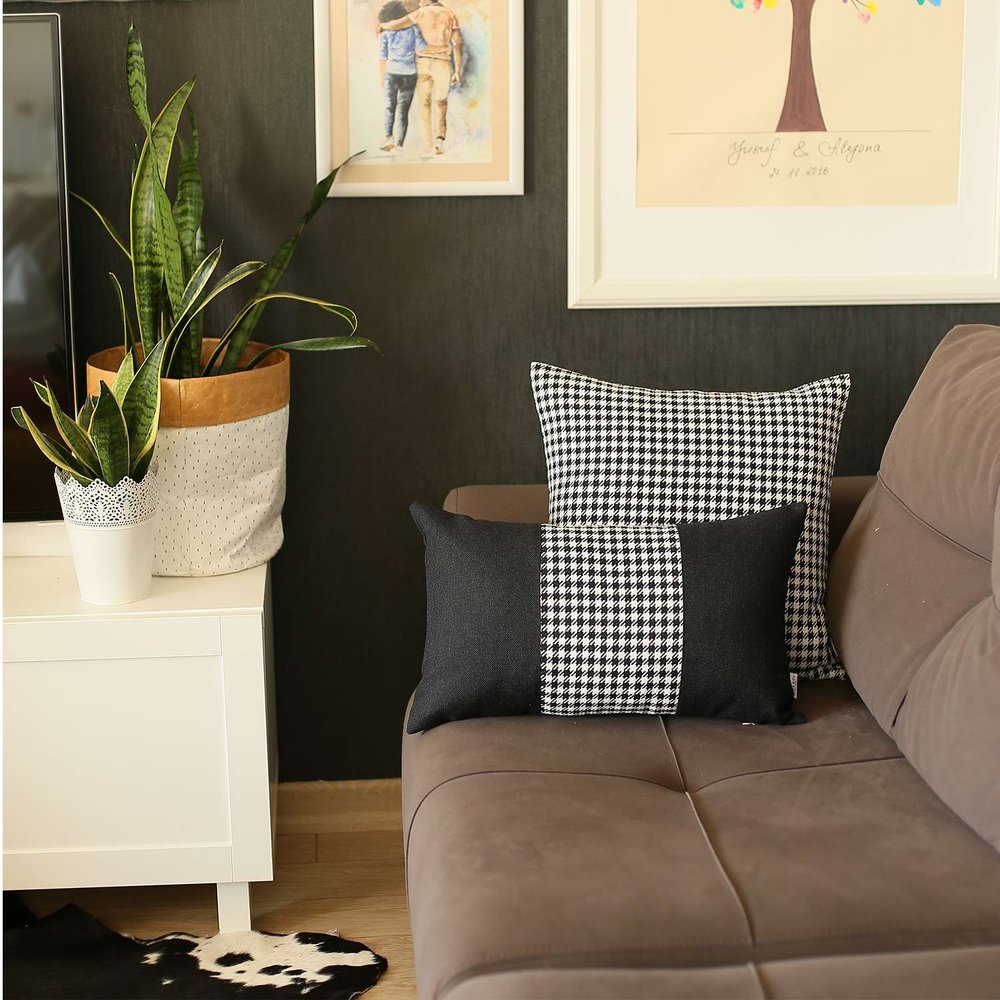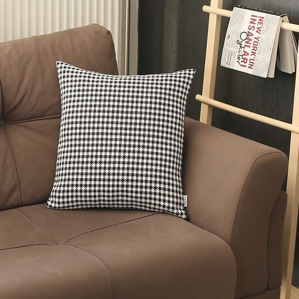 18" X 18" Grey Houndstooth Zippered Handmade Polyester Throw Pillow Cover