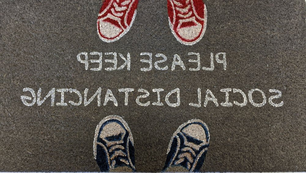 18" X 30" Gray Coir Please Keep Social Distancing Outdoor Door Mat