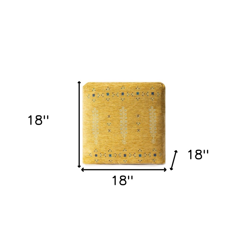 Optimize your space and add some charm to your room with the 18-inch yellow abstract pouf ottoman. Add chic style to your space with this fun pouf that not only looks cool but can be a great foot rest or extra seat when needed. Expertly upholstered with padding and soft polyester blend in a abstract pattern, this ottoman is as comfortable as it is good looking. Easy to blend into most any room, a ottoman is a way to add a good looking accent to your space that can also be practical and useful. 18-inch h x 18-inch w x 18-inch d.