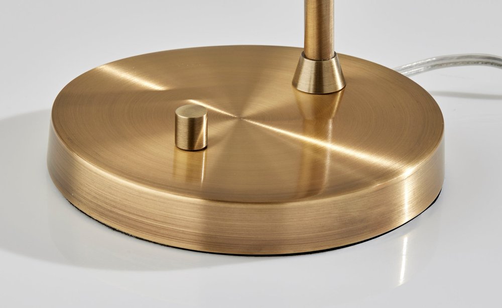 Truly a mix of design and functionality that doesn't compromise on style, this 19-inch antiqued brass metal desk lamp with light gray swirl globe shade will be a great addition to your space. The lamp is made of sturdy metal and features a antiqued brass color. The light gray shade has a globe shape and is made from glass. This desk lamp provides 'task lighting' that will illuminate your working area for reading or writing. High quality design makes this a great lamp for not only lighting, but accenting a room with style. Bring some lite and good vibes into your space with this updated and stylishly designed lamp. 18.5-inch H x 7.5-inch W x 13-inch D