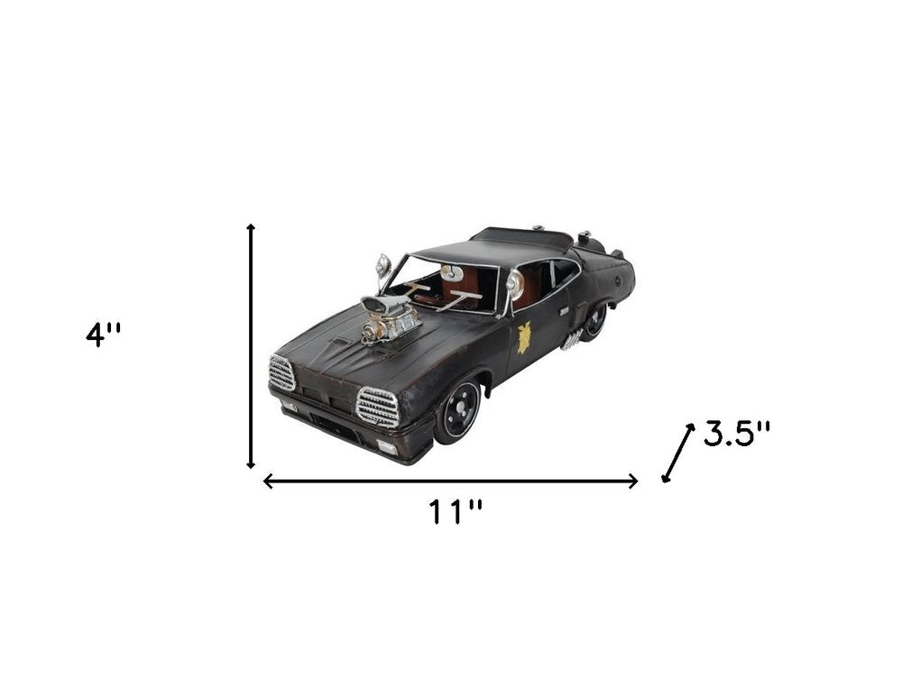 Crafted with precision and care, this handmade gray sculpture, featuring a traditional style, intricately portrays a model car. The exquisite detailing reflects the artisan's skill, making it a stunning addition to your living room decor. Utilizing high-quality metal and hand-painted to perfection, this sculpture exudes elegance and sophistication. Ideal for those with a penchant for transportation-themed art, it adds a touch of refined luxury to any space. Elevate your interior with this captivating piece that seamlessly blends timeless charm with modern aesthetics. 3.5-inch h x 11-inch w x 4-inch d.