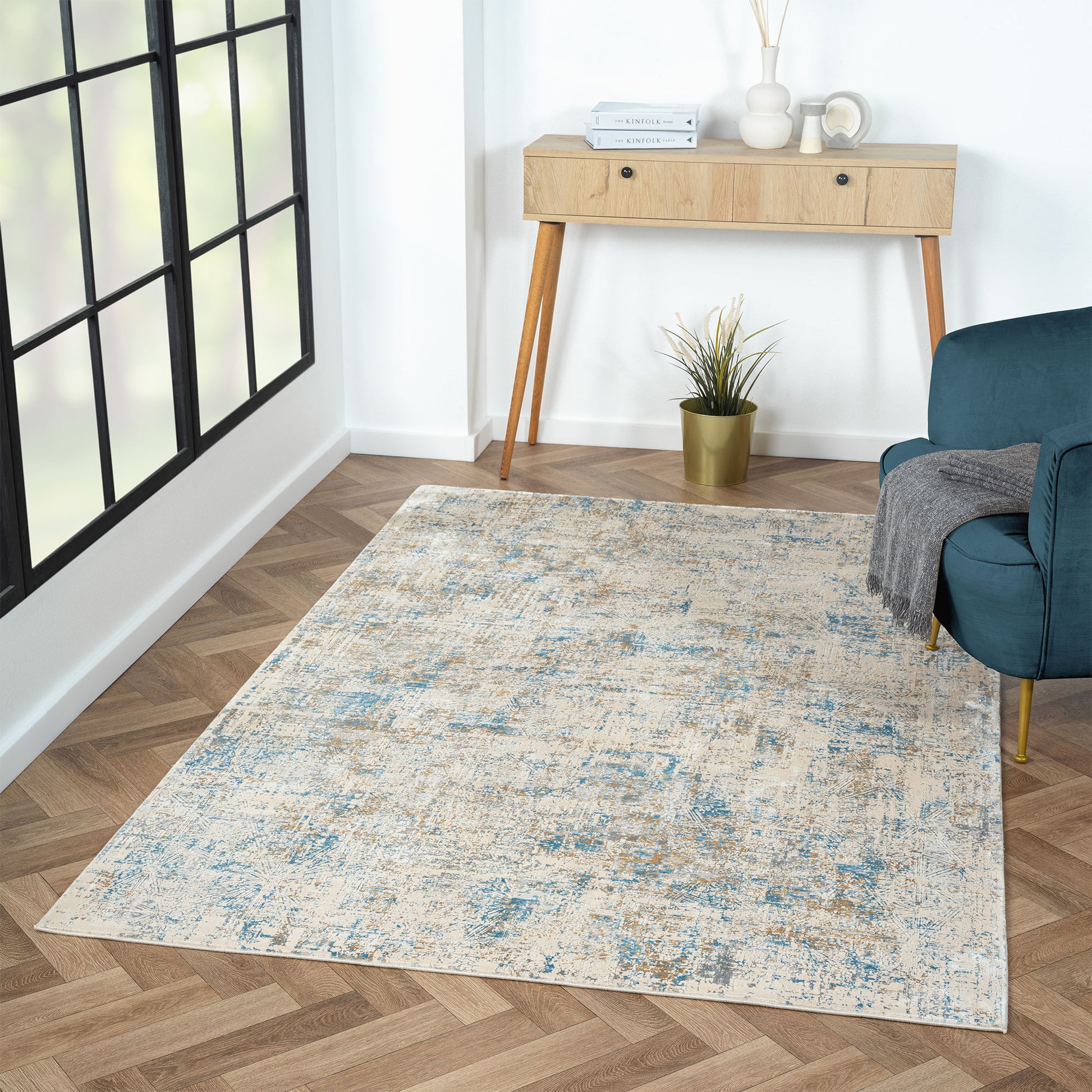This 2-foot x 3-foot blue and ivory abstract area rug, is a great way to add warmth to a room. This rectangle shaped rug features a abstract design in blue and ivory to give it visual interest. A classic shape marries with good looking design for your space area rugs help to give warmth and sense of home to your space. 24-inch H x 36-inch W x 0.26-inch D