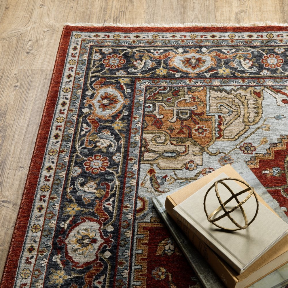 This 2' x 3' blue beige grey gold green and rust red oriental power loom stain resistant area rug with fringe, is a great way to add warmth to a room. This rectangle shaped rug features a oriental design in blue beige grey gold green and rust red to give it visual interest. A classic shape marries with good looking design for your space Ideal for spaces with kids and pets, this rug is stain resistant to help repel stains and spilled liquids. Tassel ends bring a timeless and fashionable look to your interior. Area Rugs help to give warmth and sense of home to your space. 0.24" H x 23.62" W x 36.22" D