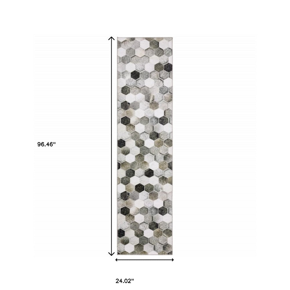 Set an inviting tone in your space with this 8-foot gray and charcoal geometric runner rug. Ideal for spaces with kids and pets, this rug is stain resistant to help repel dirt and spilled liquids. Built to last, this rug crafted from polyester fibers is known for its durability and long lasting appeal. Rugs are a great way to showcase your style, hide imperfections, warm your home and reduce noise. 24.02-inch h x 96.46-inch w x 0.11-inch d.
