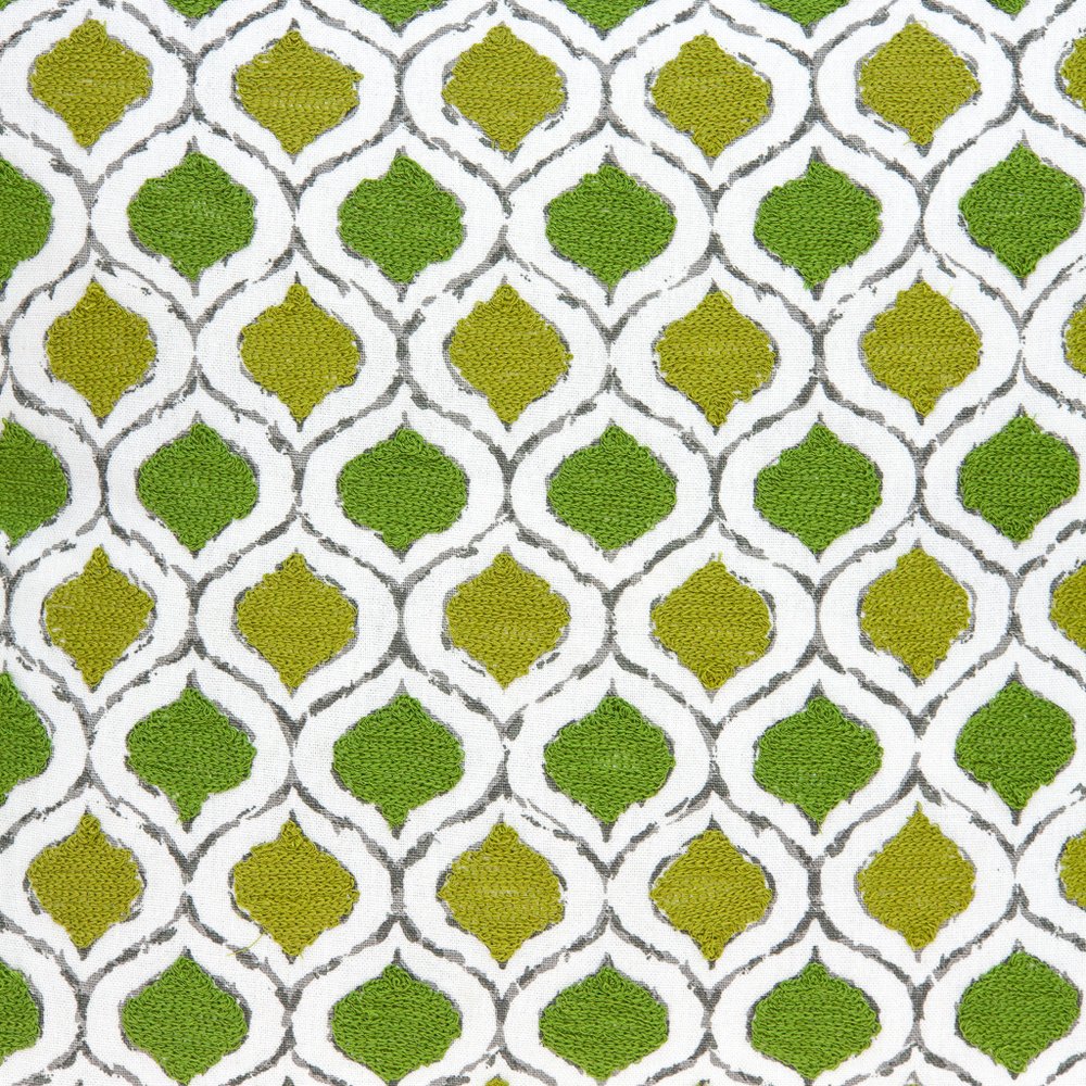 This 20-inch green and white ogee cotton throw pillow with embroidery will add a beautiful decorative accent to your decor. This green and white hued piece represents quality construction, expertly made from durable cotton that is not only long lasting but soft to the touch as well. Super soft and built to hold its shape, this polyfill pillow is a great option. Decorative throw pillows not only add color and dimension to your space but can be comfy and supportive when you are lounging and cuddling as well. Decorative pillows are a great way to change up the look and feel of your space easily and quickly. 20-inch H x 20-inch W x 7-inch D