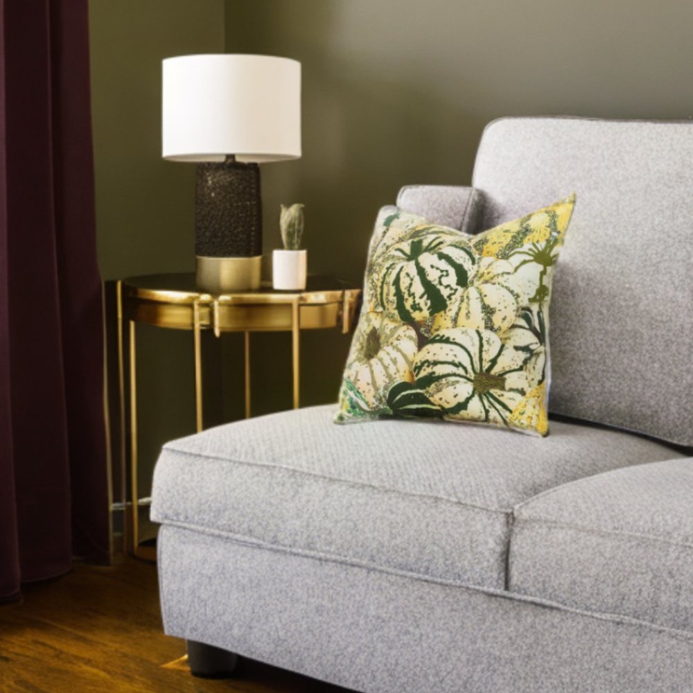 This comfy and cozy 20-inch green and white thanksgiving cotton pillow with embroidery, beads edges is a perfect way to celebrate and decorate for the fall season. Soft and textural green and white 100% cotton has been used to make this pillow look and feel like a real treasure. Super soft and built to hold its shape, this polyester pillow is a great option. For anyone that loves to decorate or accent their space with color and texture. Decorative pillows are a great way to change up the look and feel of your space easily and quickly. 20-inch H x 20-inch W x 6.25-inch D
