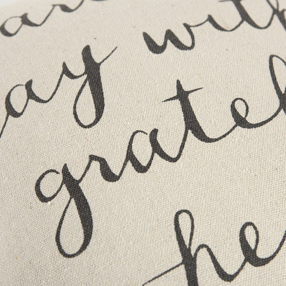 20" Natural and Gray Grateful Heart Cotton Throw Pillow