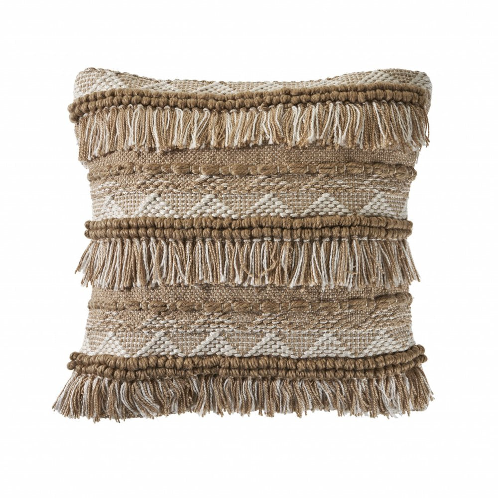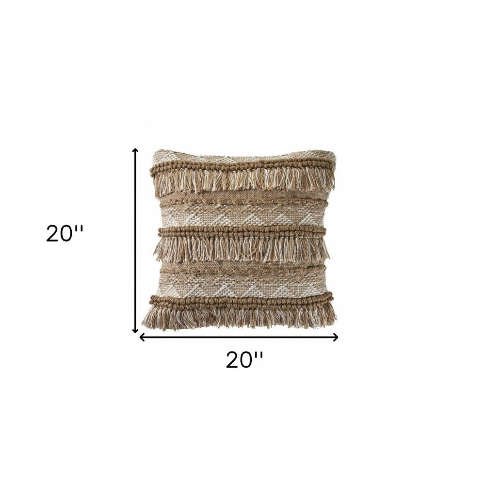 20" X 20" Beige And White Polyester Geometric Zippered Pillow
