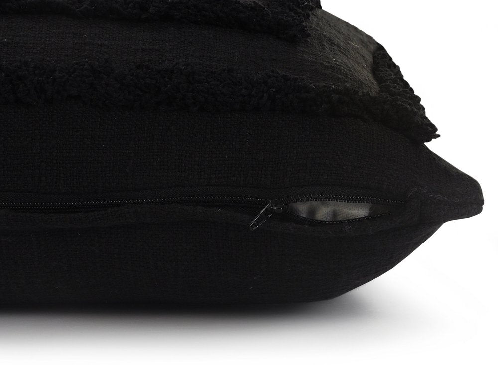 This 20" x 20" black 100% cotton geometric zippered pillow will add a beautiful decorative accent to your decor. Soft and textural black 100% cotton has been used to make this pillow look and feel like a real treasure. Decorative throw pillows not only add color and dimension to your space but can be comfy and supportive when you are lounging and cuddling as well. Decorative pillows are a great way to change up the look and feel of your space easily and quickly. 4" H x 20" W x 20" D