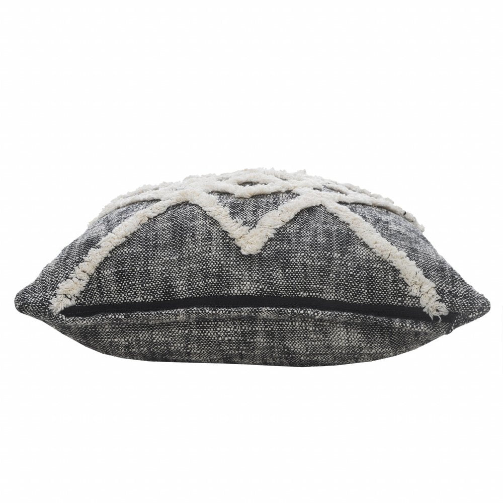 20" X 20" Black And Cream 100% Cotton Geometric Zippered Pillow