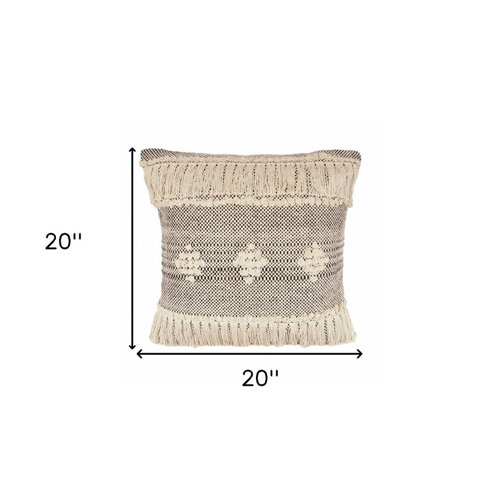 20" X 20" Black And Off-White 100% Cotton Geometric Zippered Pillow
