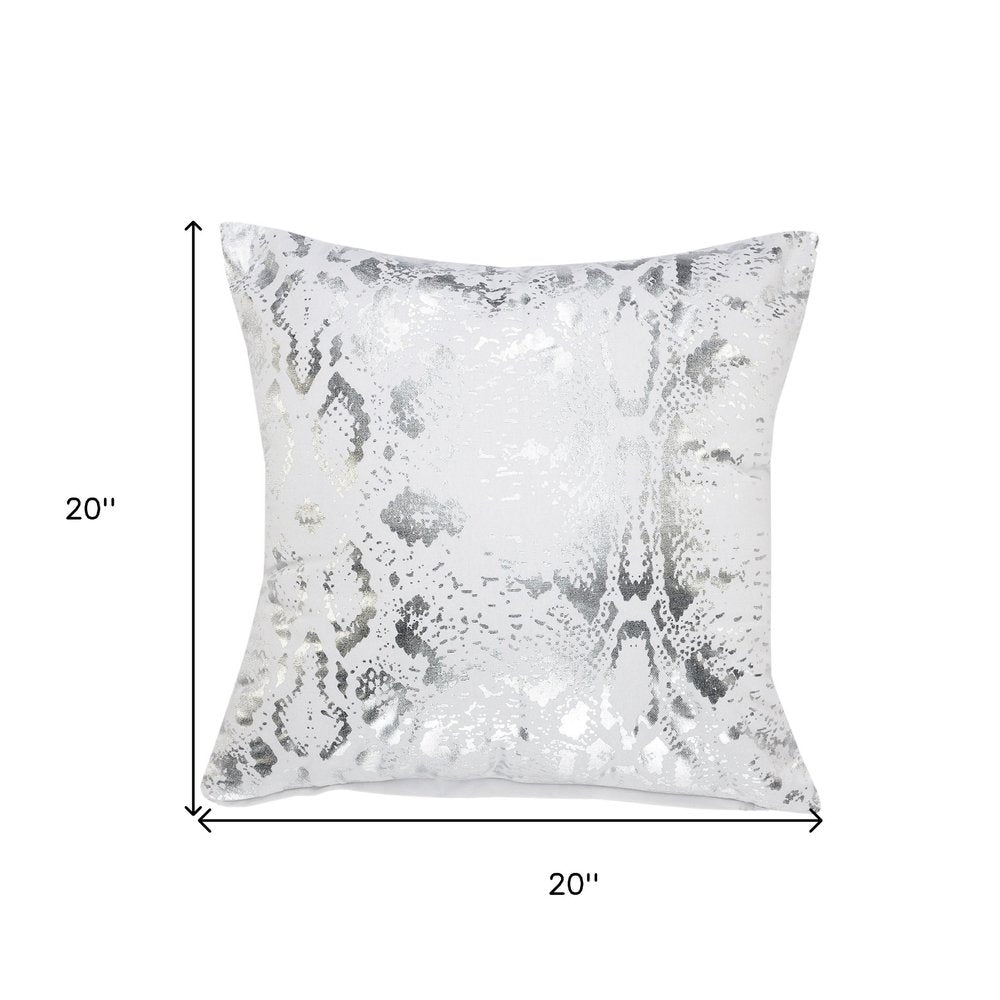 20" X 20" White And Silver 100% Cotton Animal Print Zippered Pillow
