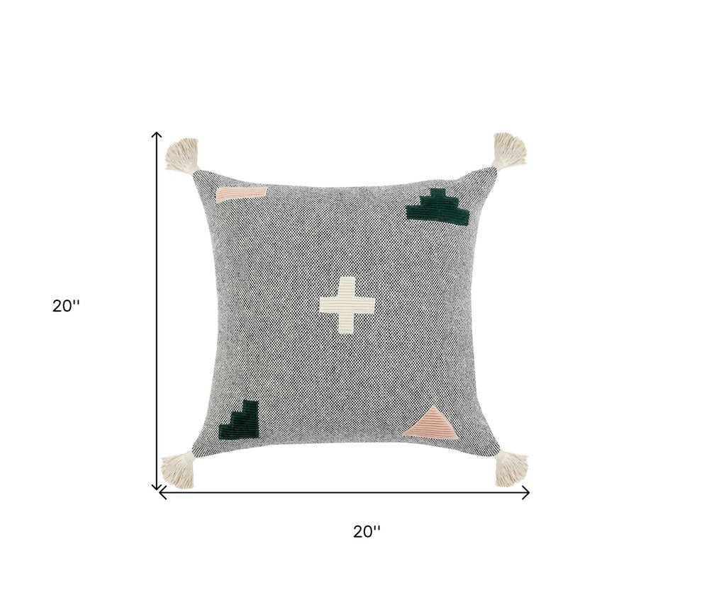 20" X 20" Black Off-White Yellow And Orange 100% Cotton Geometric Zippered Pillow
