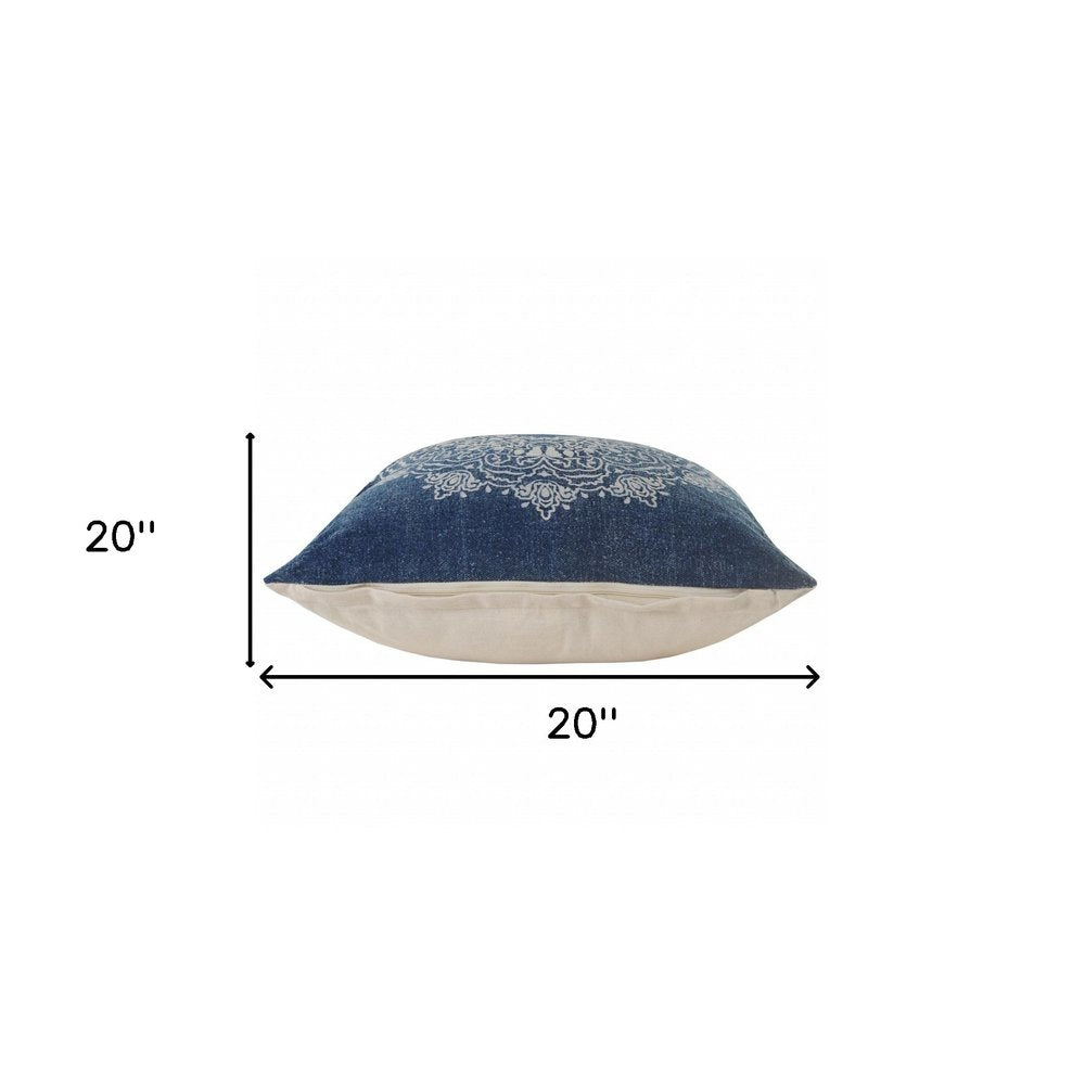 Unique and decorative, this comfortable 20" x 20" blue and white 100% cotton geometric zippered pillow will leave a lasting impression. This blue and white colored decorative pillow is made from high grade 100% cotton that makes it super soft to the touch and long lasting. Great to use on its own or mix with other decorations for the perfect look. A great decorative accessory for your favorite chair, to accent your sofa, or to use as part of your bed ensemble. 4" H x 20" W x 20" D