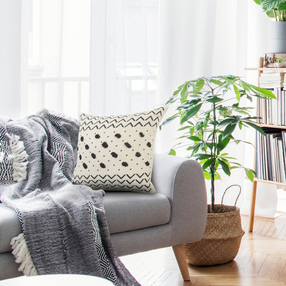 The 20" x 20" cream and black 100% cotton chevron zippered pillow is the perfect decorative accessory for your home. This cream and black colored decorative pillow is made from high grade 100% cotton that makes it super soft to the touch and long lasting. Great to use on its own or mix with other decorations for the perfect look. Decorative pillows are a great way to change up the look and feel of your space easily and quickly. 4" H x 20" W x 20" D