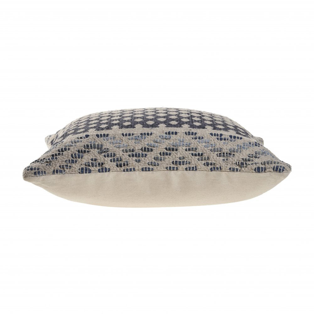 The perfect complement to your sofa, favorite chair, or bed, this 20" x 20" denim blue and ivory 100% cotton chevron zippered pillow is a great decorative accent. The denim blue and ivory coloring of the soft and long lasting 100% cotton will add dimension and texture to your space. Great to use on its own or mix with other decorations for the perfect look. A great decorative accessory for your favorite chair, to accent your sofa, or to use as part of your bed ensemble. 4" H x 20" W x 20" D