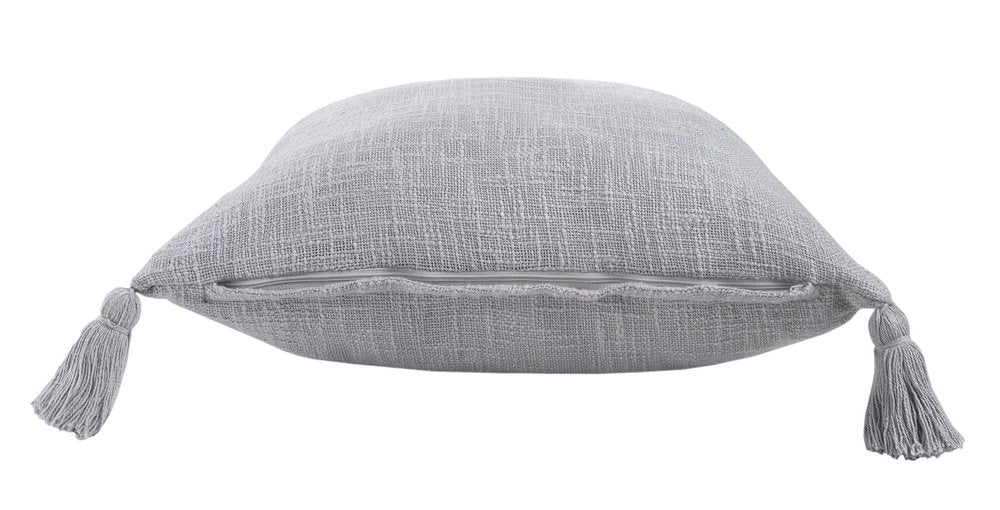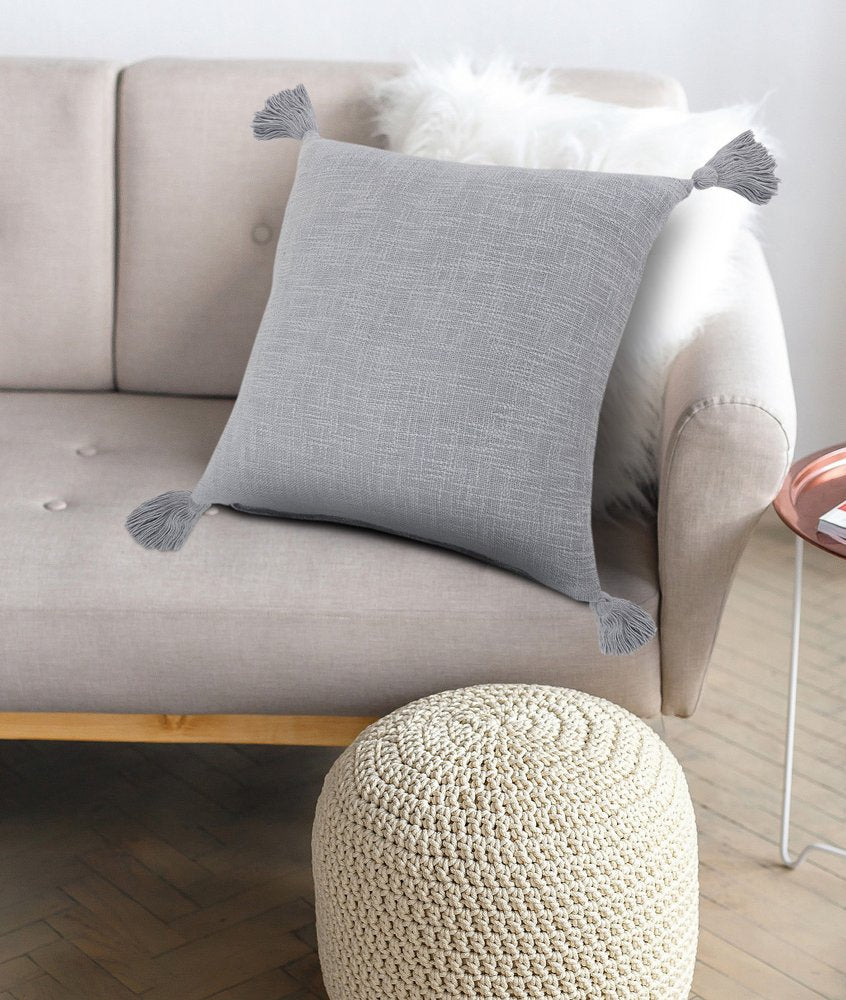 The 20-inch light pink cotton throw pillow with tassels is the perfect decorative accessory for your home. Durable light pink cotton has been used to give this pillow a beautiful look that will stand the test of time. Fun and decorative tassels add some high end and hand-crafted textural designer touches. Super soft and built to hold its shape, this polyfill-filled pillow is a great option. For anyone that loves to decorate or accent their space with color and texture. A great decorative accessory to add color and dimension to your favorite chair, accent your sofa, or to use as part of your bed ensemble. 20-inch h x 20-inch w x 4-inch d.