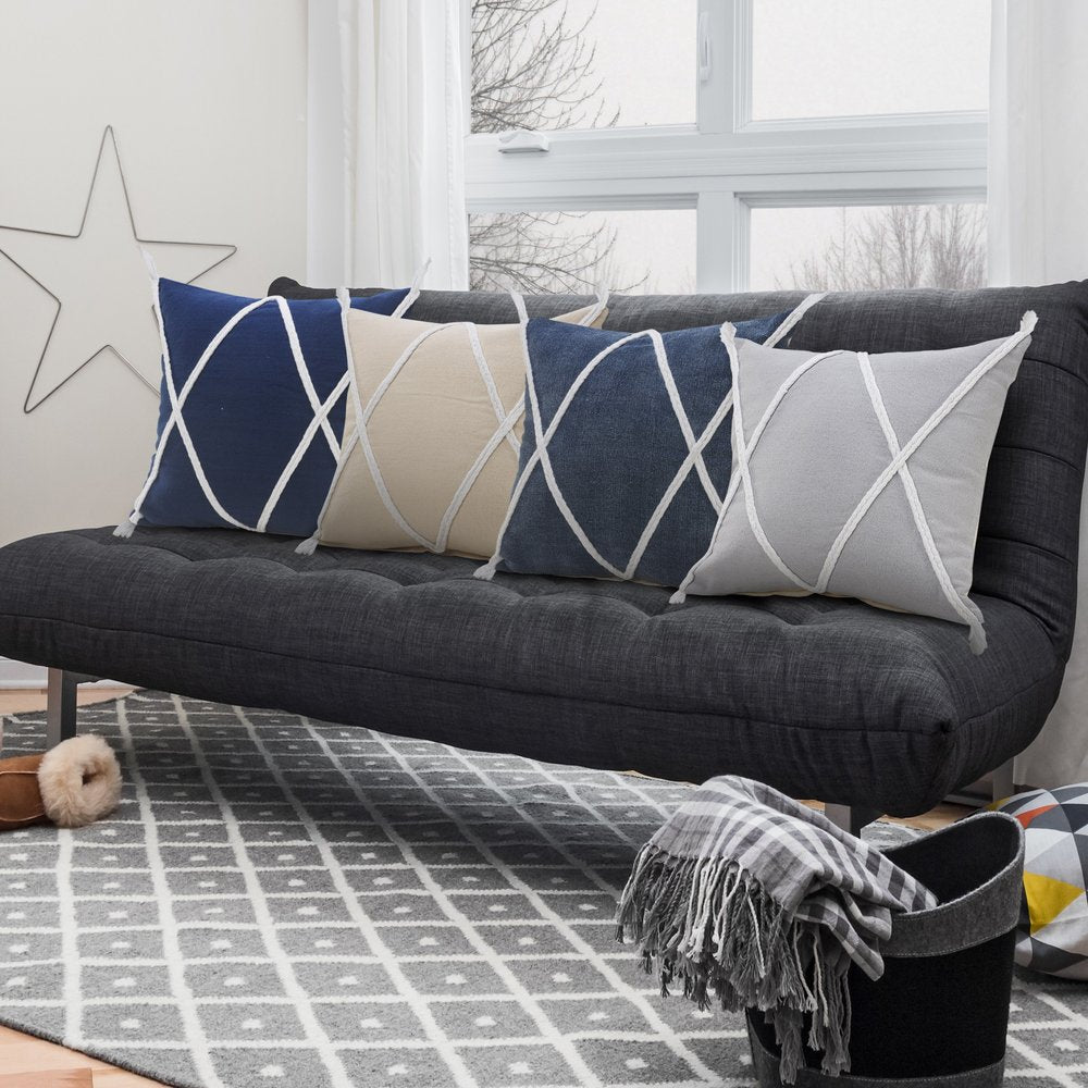 Add an air of fashion to your room and rejuvenate the space with this cute and fashionable 20" x 20" light gray and white 100% cotton coastal zippered pillow. The light gray and white coloring of the soft and long lasting 100% cotton will add dimension and texture to your space. For anyone that loves to decorate or accent their space with color and texture. A great decorative accessory for your favorite chair, to accent your sofa, or to use as part of your bed ensemble. 4" H x 20" W x 20" D