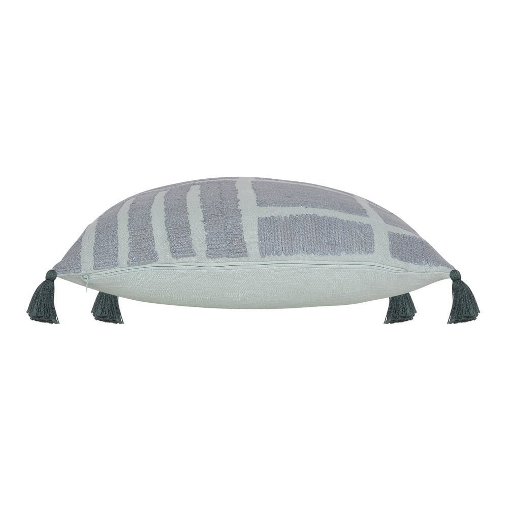The 20-inch x 20-inch olive green geometric cotton zippered pillow with tassels is the perfect decorative accessory for your home. Soft and textural olive green 100% cotton has been used to make this pillow look and feel like a real treasure. Charming decorative tassels give this design texture along with a hand-crafted look and feel. This soft polyfill pillow not only is decorative but made to be comfy and cozy all day long. For anyone that loves to decorate or accent their space with color and texture. Decorative pillows are a great way to change up the look and feel of your space easily and quickly. 20-inch H x 20-inch W x 4-inch D