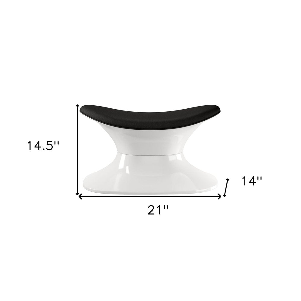 Get ready to relax with this black and white wool and fiberglass contempo footstool ottoman. This unique accent is a treasure at the end of the day as an ideal place to rest your feet and legs and can also be used for extra seating when needed in a pinch. A white fiberglass pedestal style frame is finished off with a black upholstered seat that is the epitome of quality construction and modern design. Practical and useful, this contemporary piece will be a great accent to your space. 14.5-inch H x 21-inch W x 14-inch D